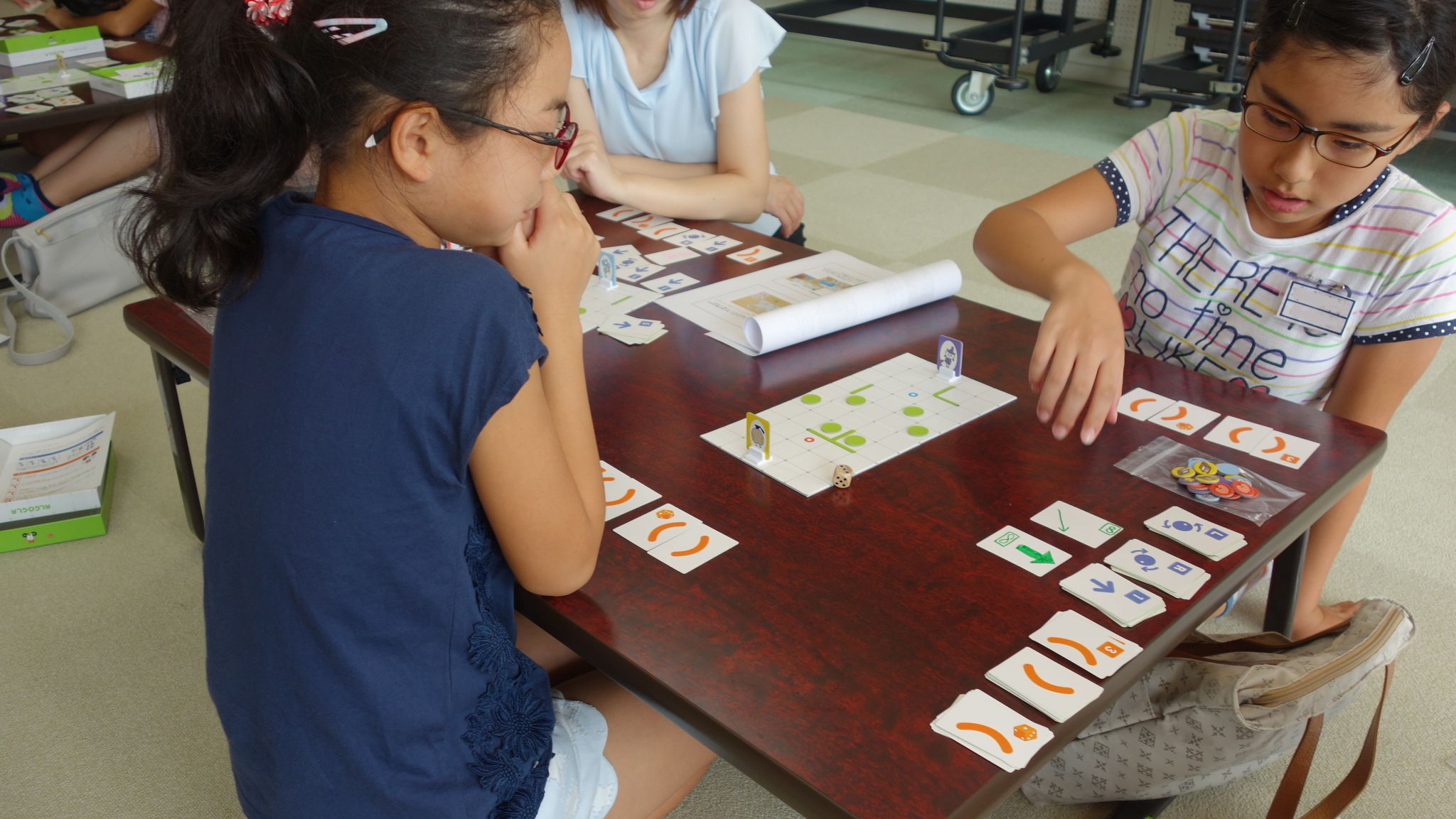 一つ一つの動きに対応したカードを、どのように並べたら思った通りの動きをプログラミングできるか?ゲームを通じて「論理的思考力」や「問題解決能力」、そして小学校のプログラミング教育で求められている「プログラミング的思考」を鍛えることができます。