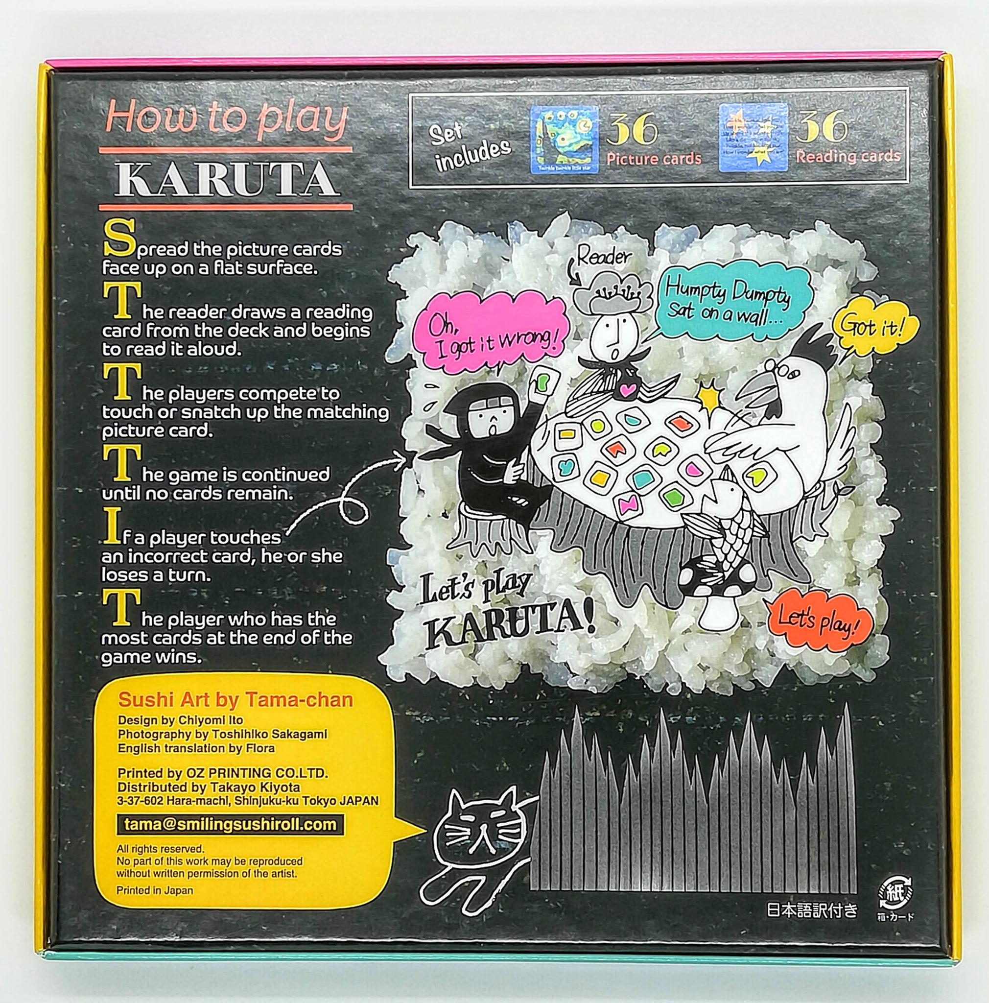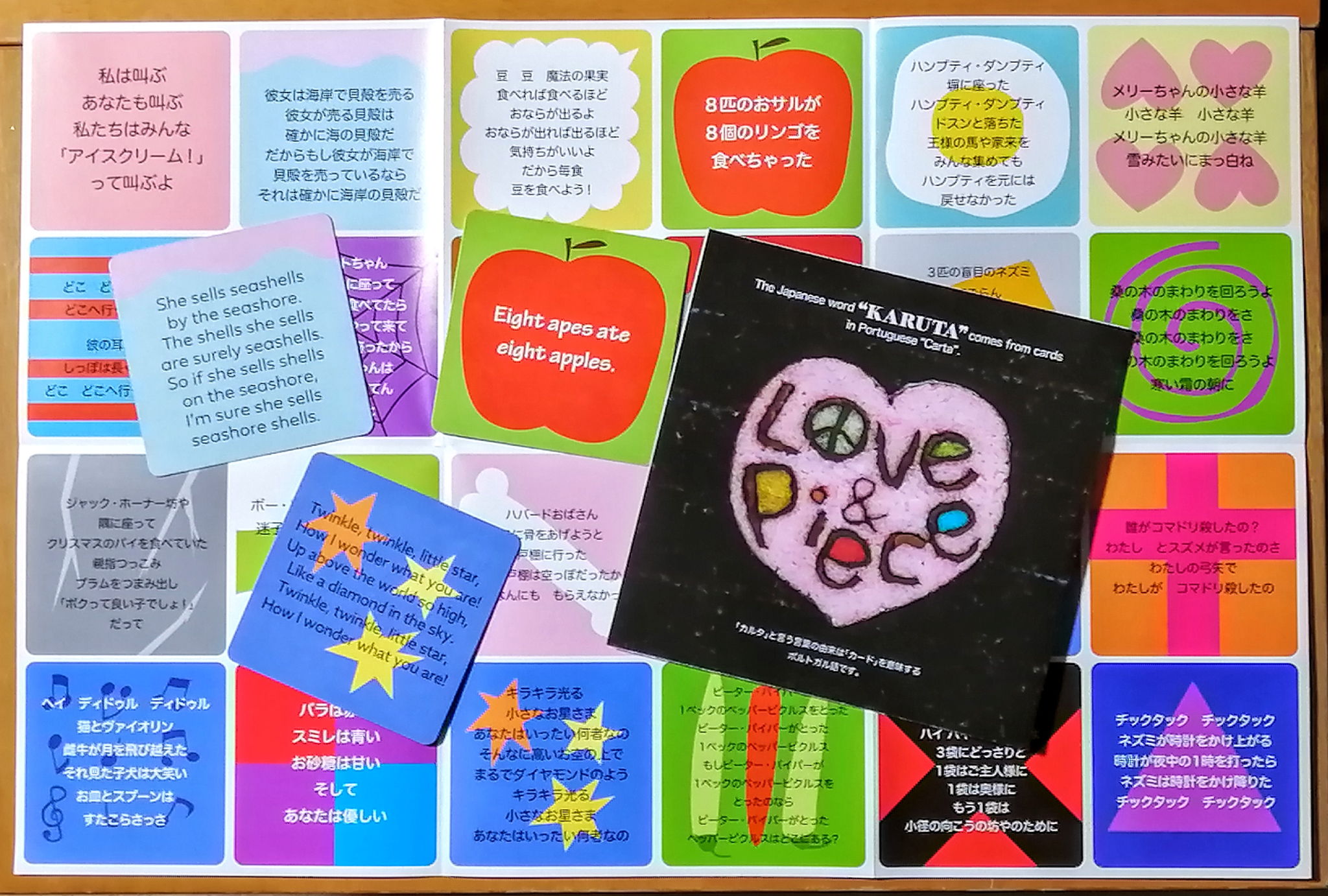 日本人には馴染み深い「読まれたライム(詩)にマッチする絵札を取る」と言うカルタですが、海外にはありません。カルタ自体、文字や詩を遊びながら覚えると言う学習よりのゲームです。