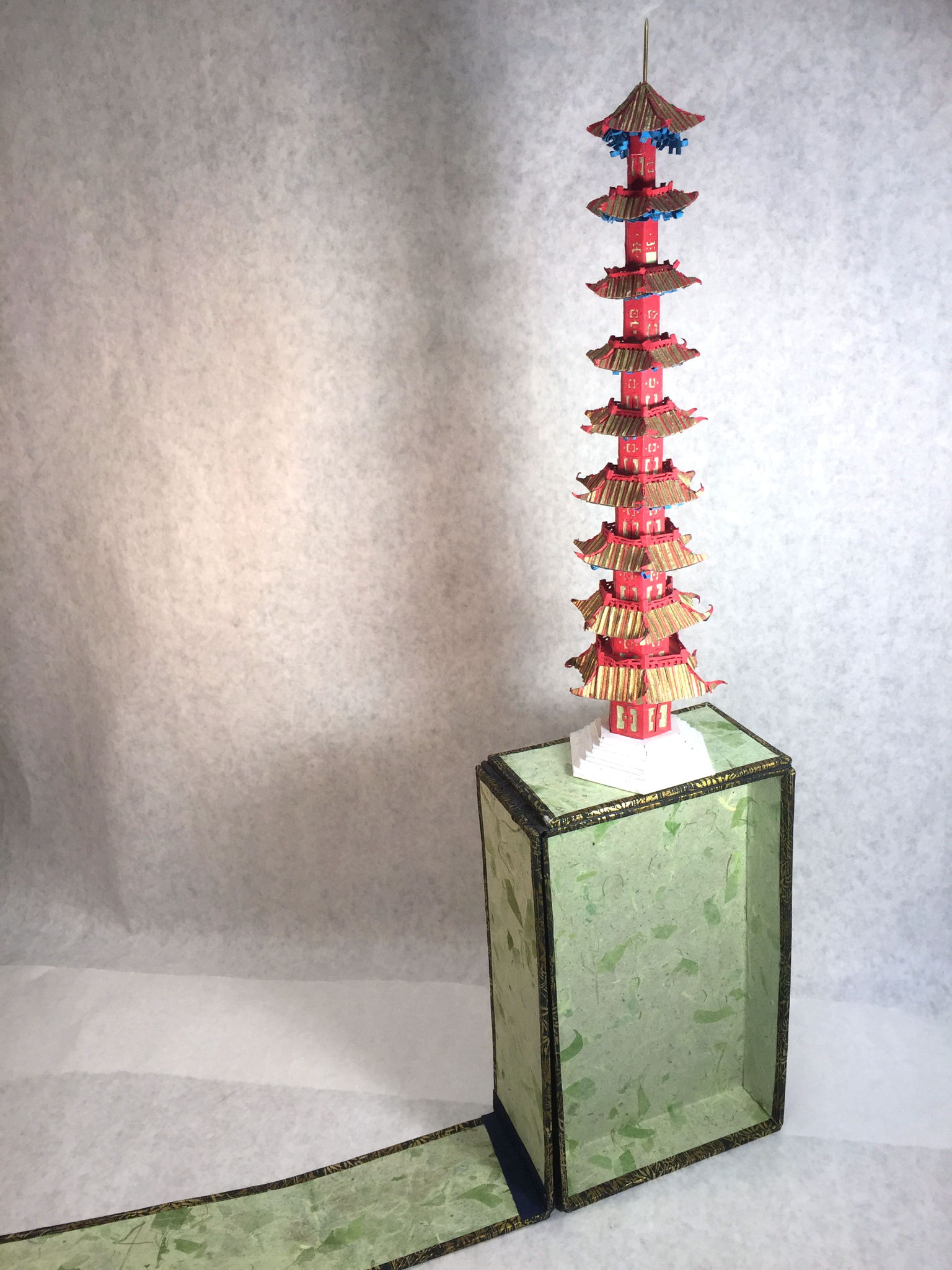 The paper pagoda's nine levels fully extended.