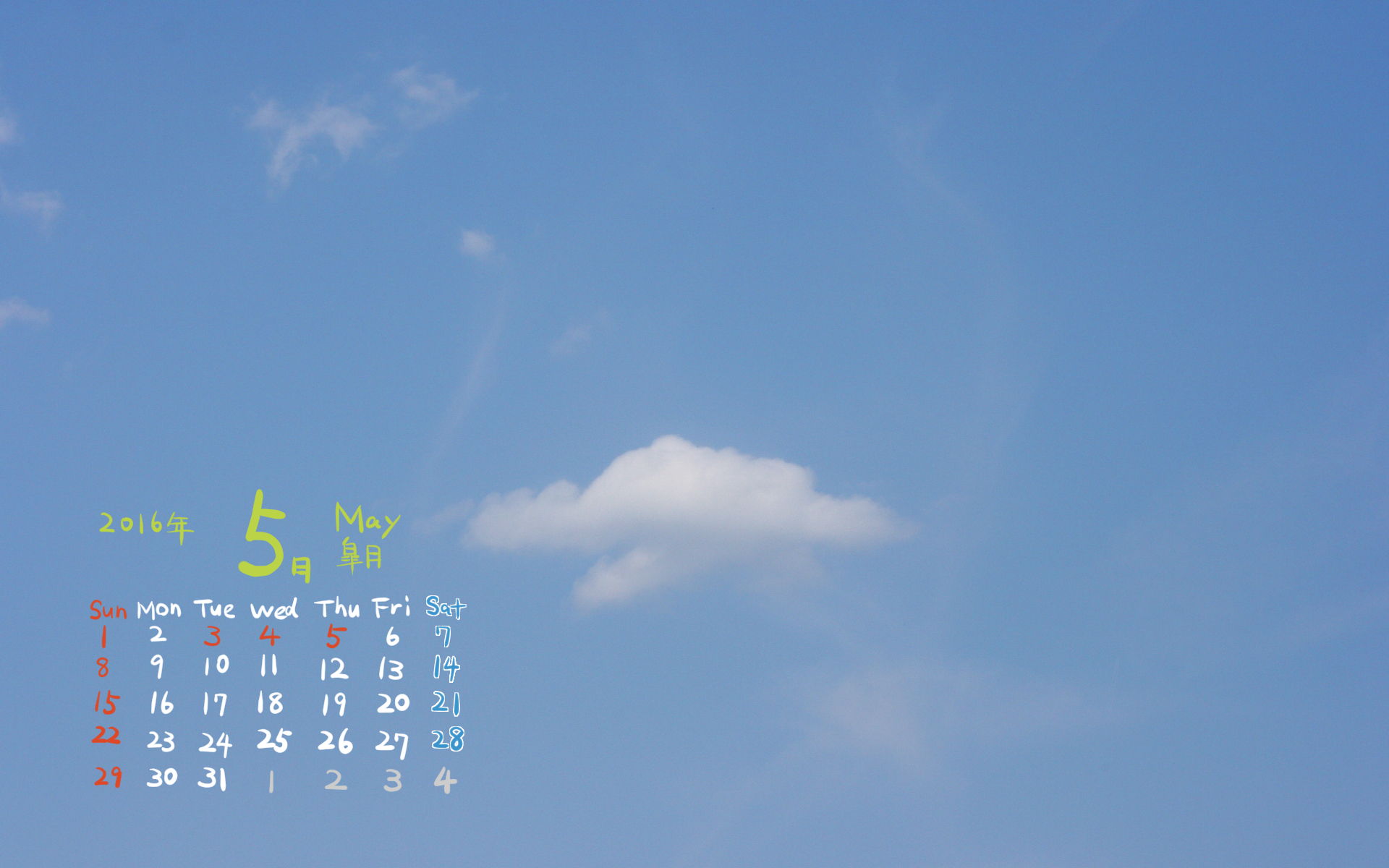 2016年5月PC壁紙(カレンダー付き)3(1920×1200)