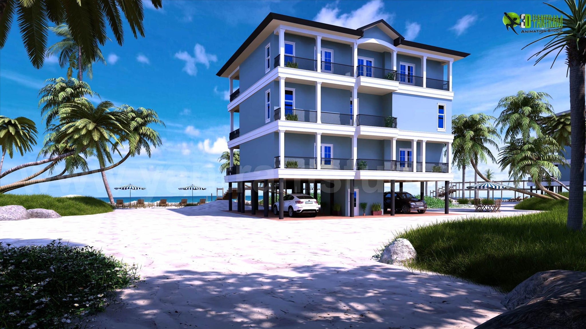 Beach House Exterior Design Rendering Animation