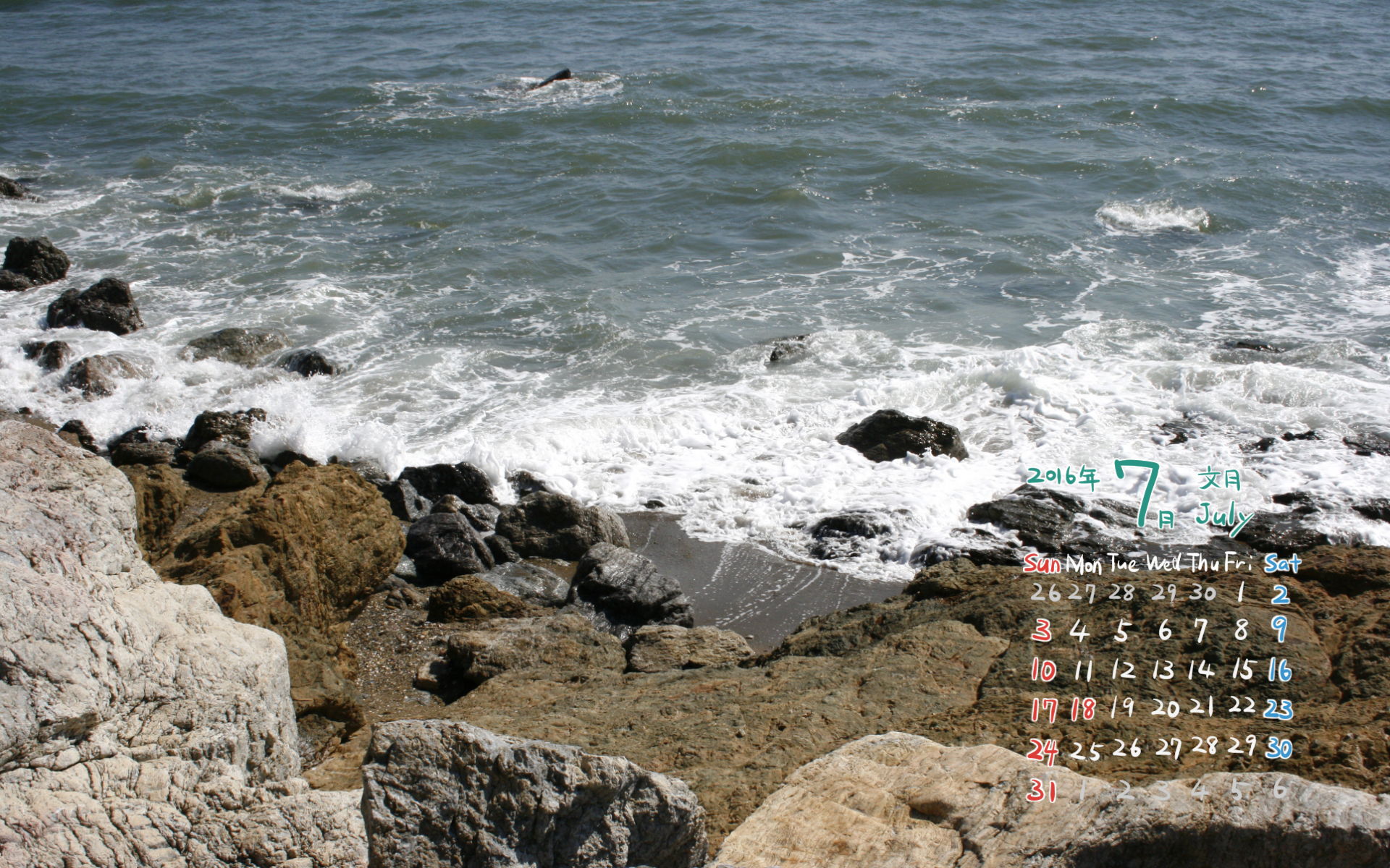 2016年7月PC壁紙(カレンダー付き)1(1920×1200)