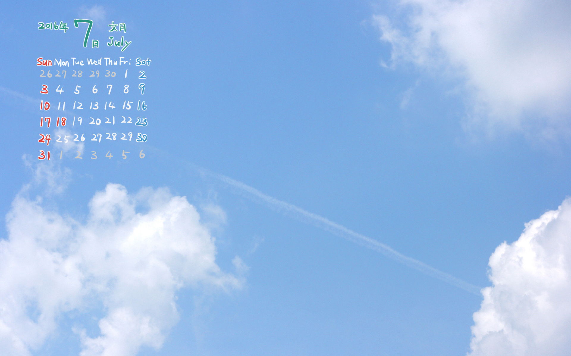 2016年7月PC壁紙(カレンダー付き)2(1920×1200)