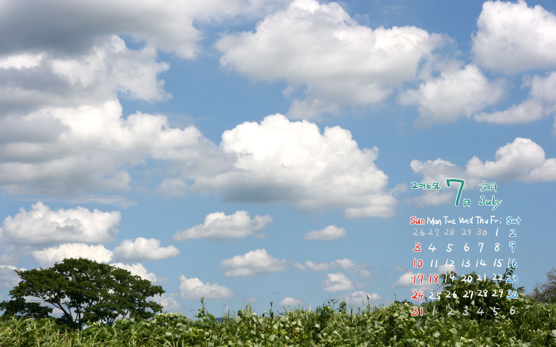 2016年7月PC壁紙(カレンダー付き)3(1920×1200)