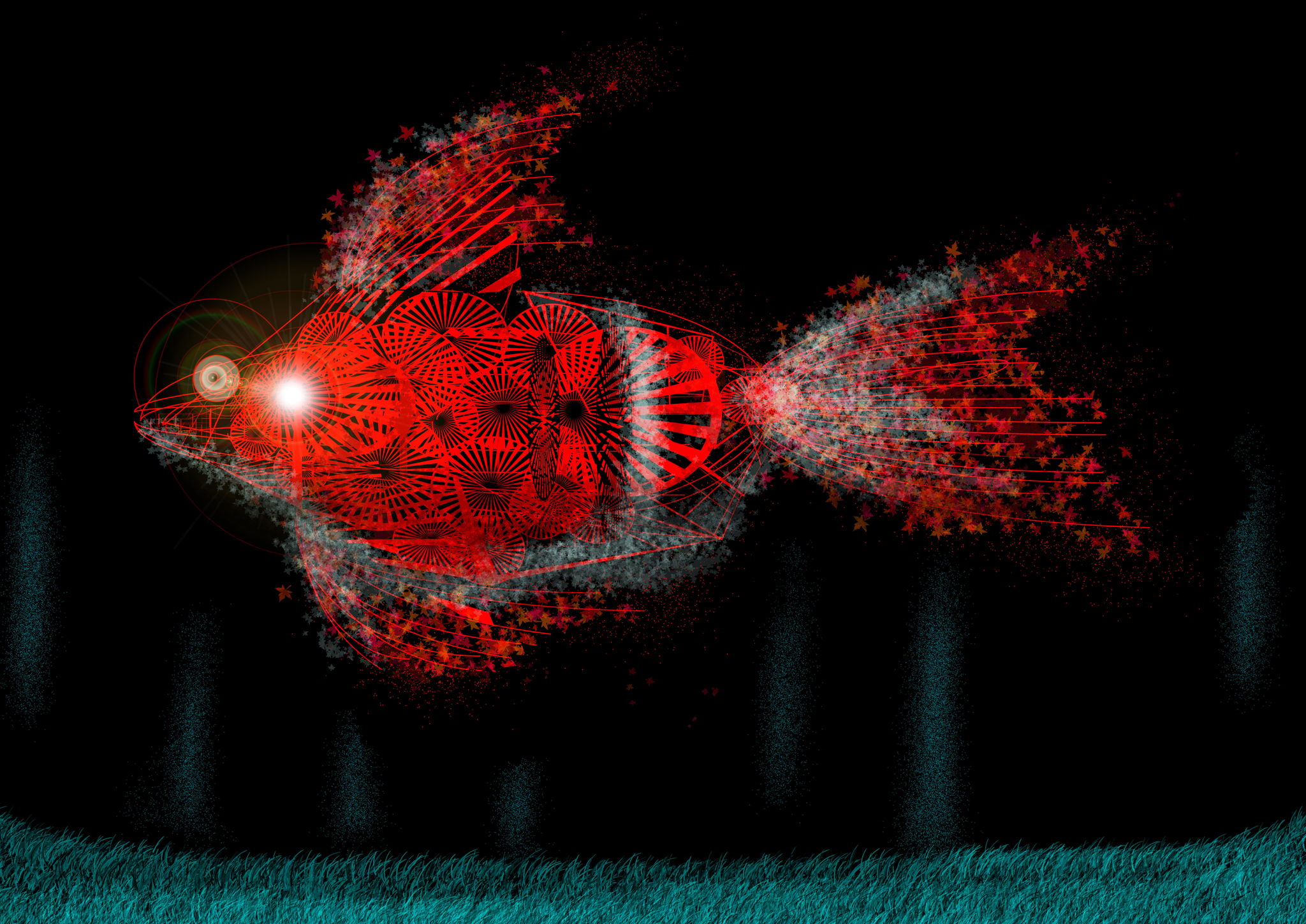 機械でできた金魚釣りは成立するのか?と考えながら描いた機械金魚の絵。