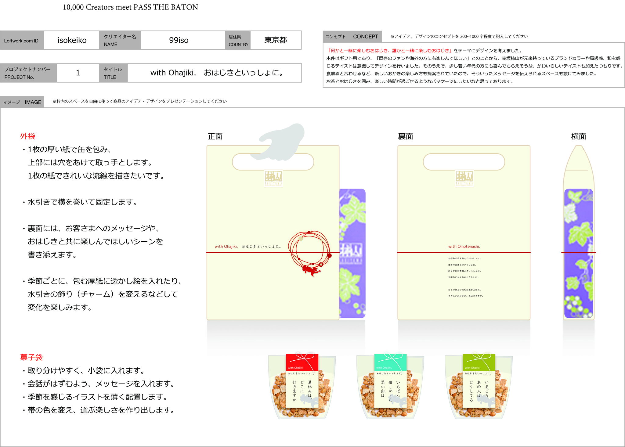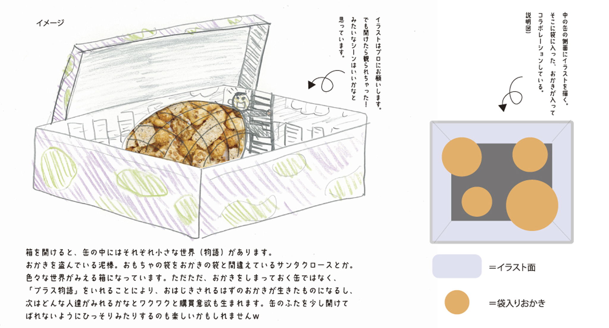 Design a new gift using Akasaka Kakiyama's irregular okaki crackers and deadstock tin.