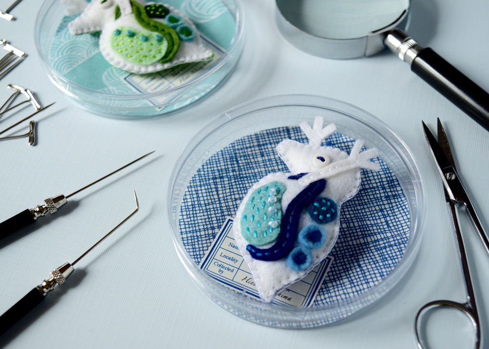 眠っている巨大ミジンコブローチ(ブルー)