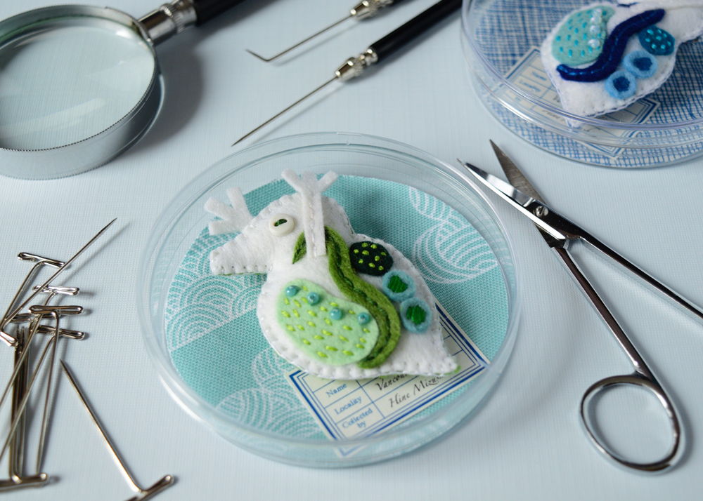 眠っている巨大ミジンコブローチ(グリーン)
