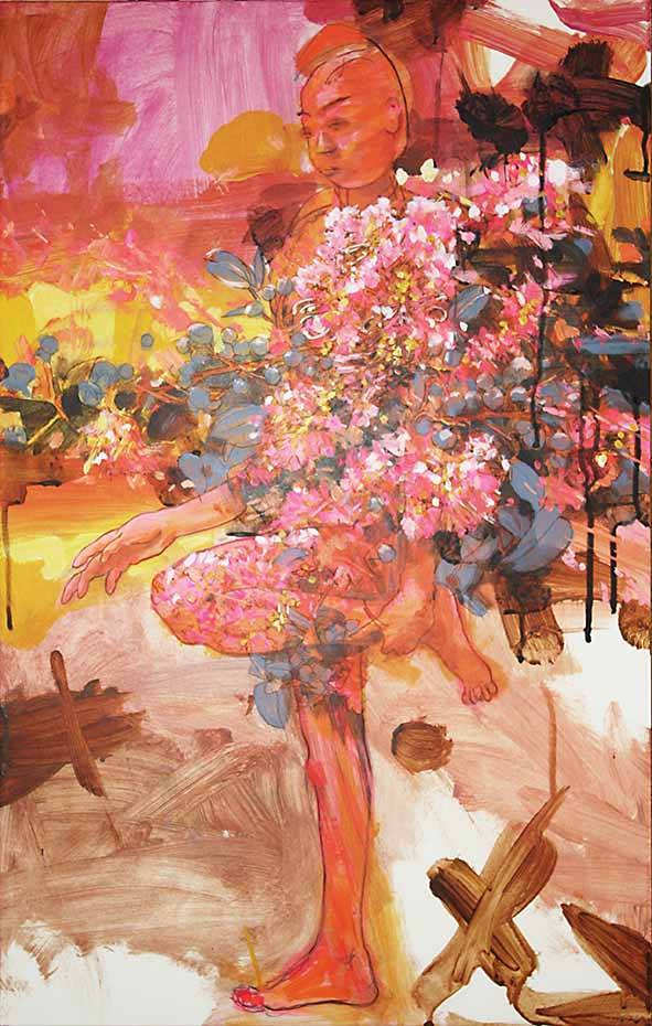 ある朝に、寝床に置いたスケッチブックにほとんど目を閉じて浮かんでくる姿を描いたものを元にしている。