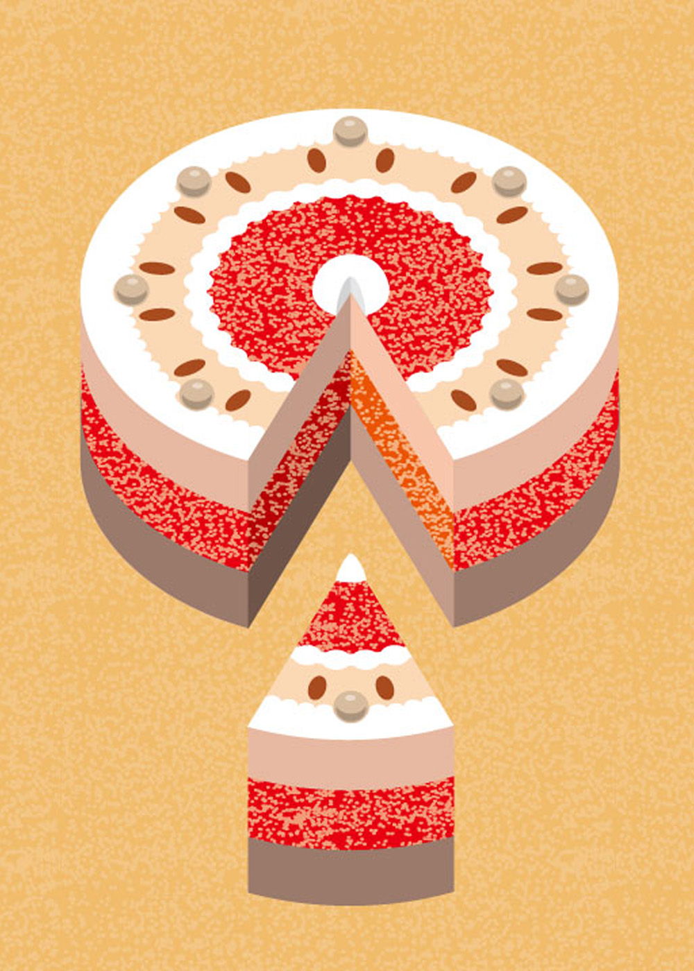 上手に8分割するとサンタ顔になるクリスマスケーキのイラストです。