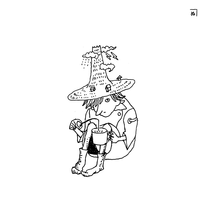 旅人。帽子の上に小人の街がある。コップで釣りをするのが好き。人間や文明がきらい。
