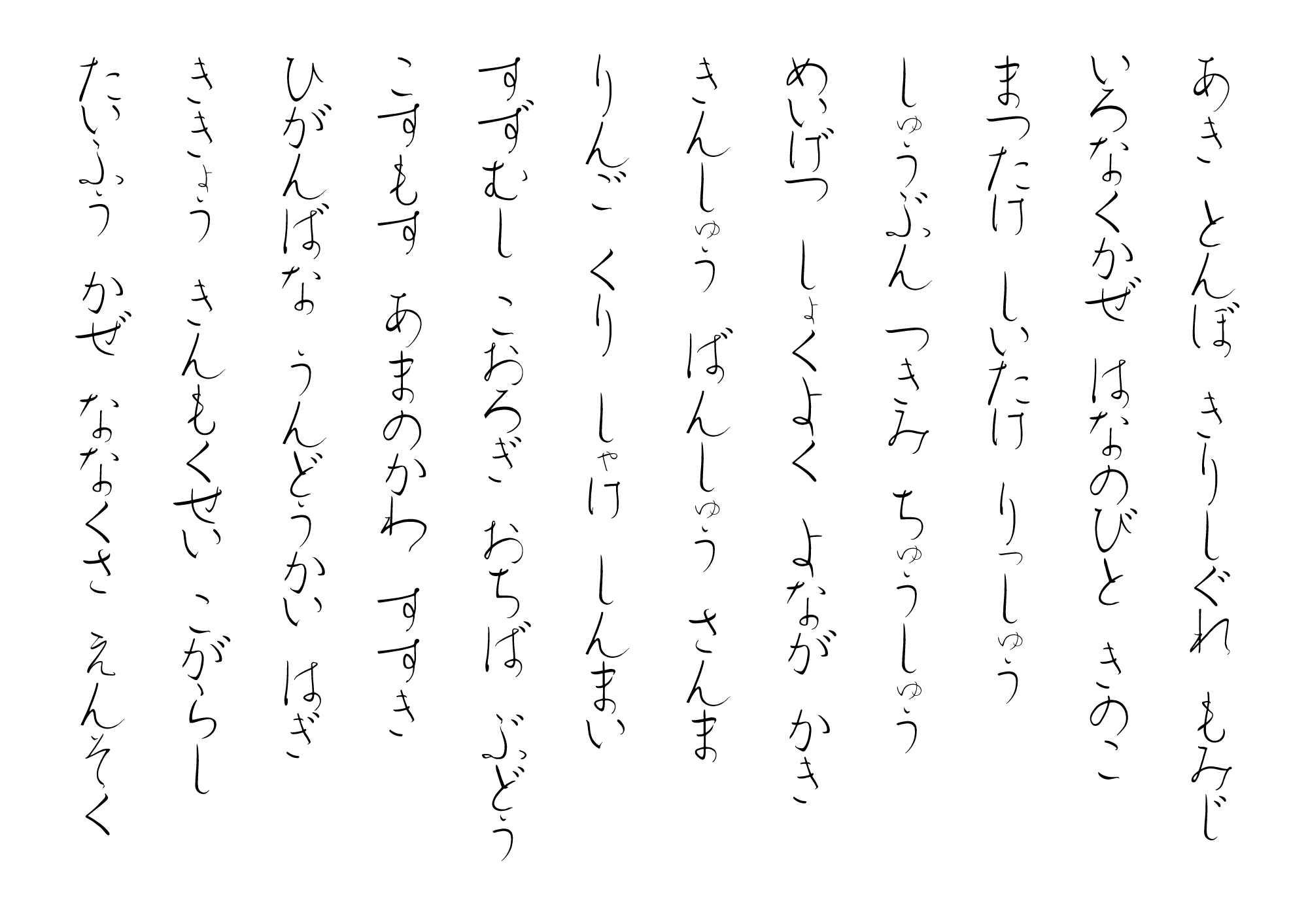 Format: Open Type/平仮名のみを収録(漢字は収録しておりませんので、ご注意ください)/個人、商用含めご自由にお使いください。