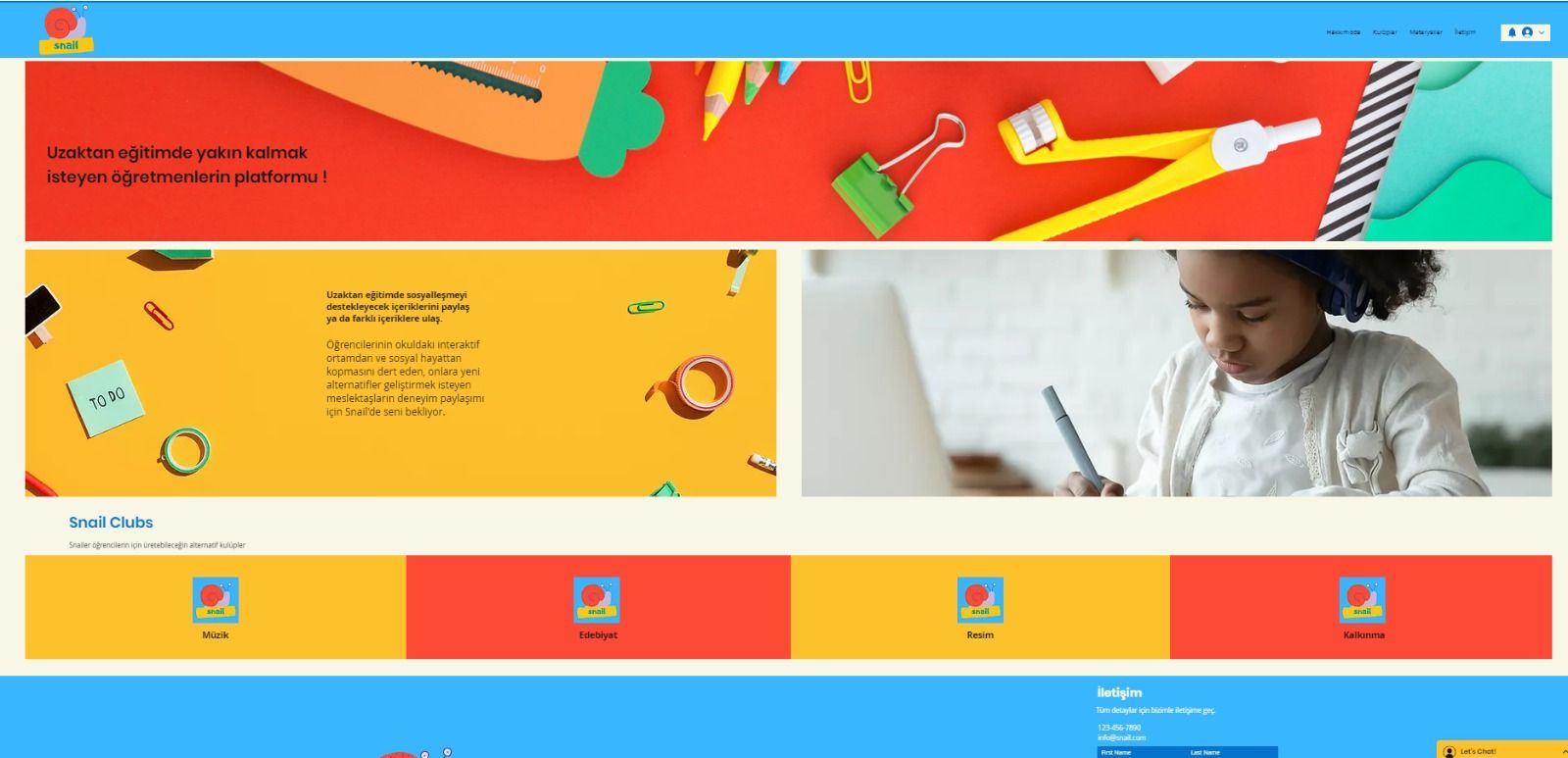 Snail ekibi olarak yaptığımız araştırmalar neticesinde 'öğrencilerin sosyal kulüp çalışmalarını dijital ortama taşımalarını sağlamak' üzerine bir web sayfası tasarladık.