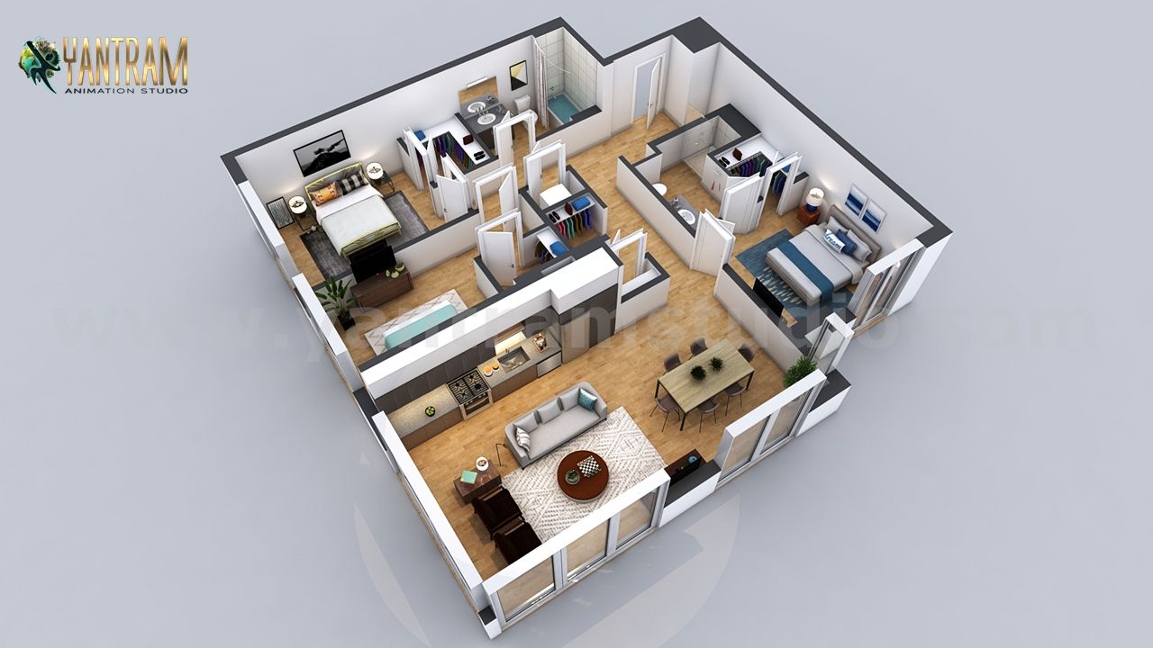 大阪の建築モデリング会社による2ベッドルームのアパート/家の設計による住宅の3Dフロアプラン-日本