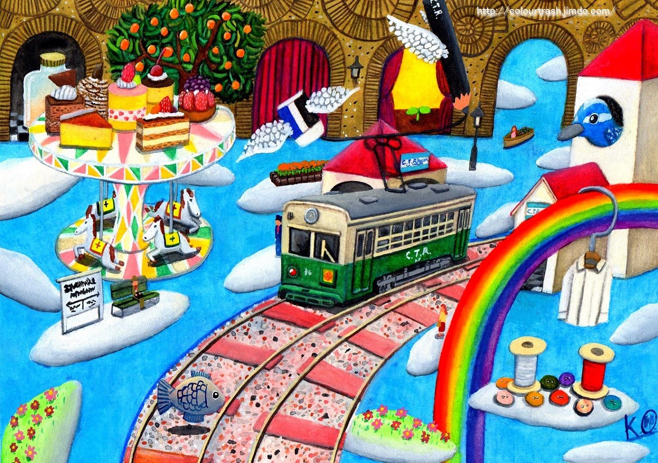 水彩色鉛筆・水彩絵の具で描いたもの。