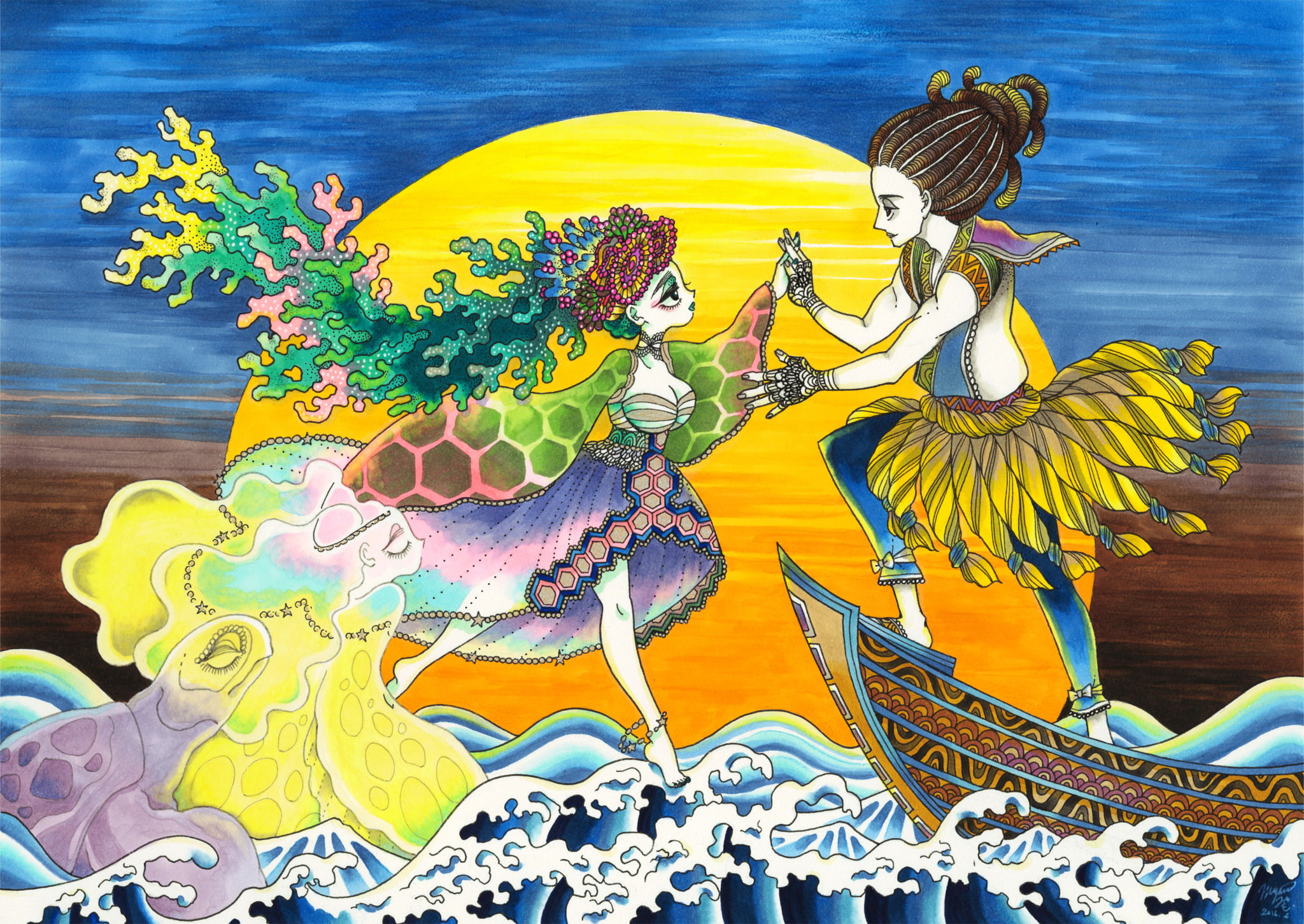 乙姫と浦島の出会い。