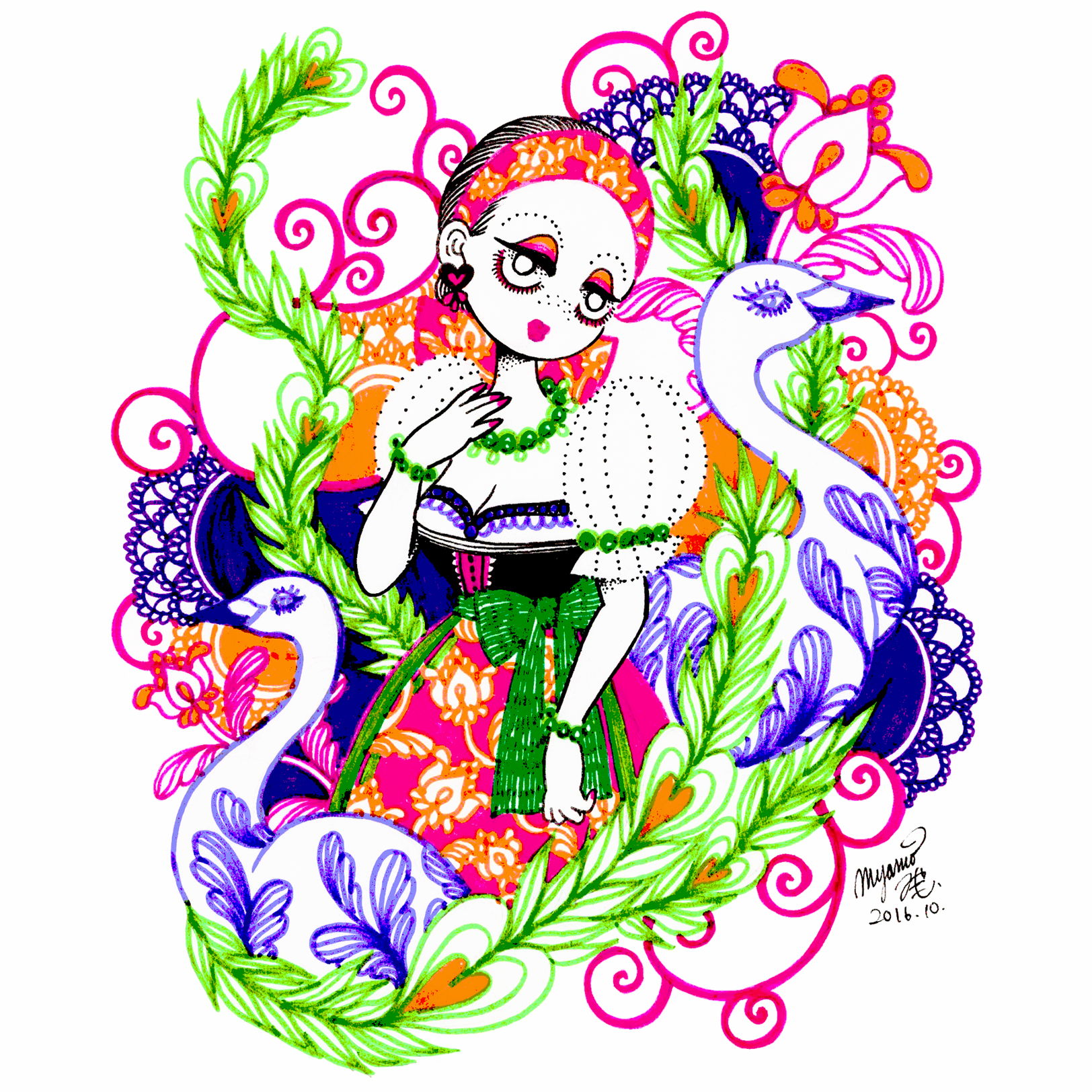 オーストリア旅行で見たとても可愛い民族衣装と白鳥に影響されて。