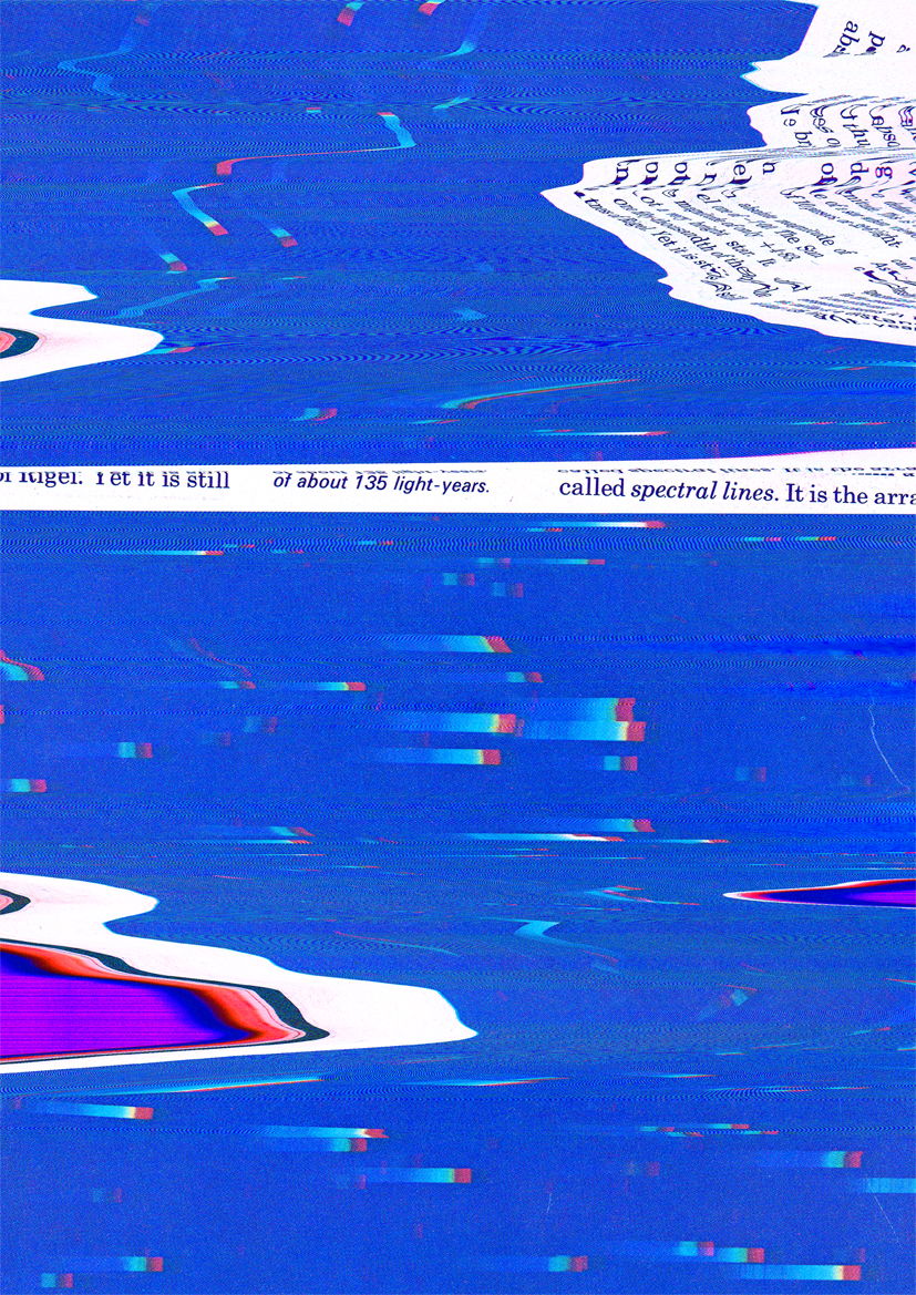 Subvert Systems is a body of new work by Brisbane- based multimedia artist Warren Handley. Through subversion of the intended function of everyday technologies Handley exposes how technology becomes normalised and interrogates the trajectory of ideas from science fiction to science fact. Produced by interrupting the usual function of flatbed scanners and exaggerating the resulting imagery through image manipulation Handley presents a speculative and theoretical representation of the distortion effects that gravitational collapse might cause around the event horizon of a black hole. Handley’s process aims to draw a parallel with the recently popularised scientific idea of super translations the theory that matter passing through the event horizon of a black hole is destroyed but leaves an information imprint within the event horizon; a two-dimensional description or ‘information hologram’ of a three-dimensional matter. Like these information holograms, resulting visual distortions are not a reconstruction of their original subject matter, nor an entirely new work. Handley’s process of subverting the assumed function of this technology raises questions about consumers’ passive acceptance of everyday technology while generating something unexpected and unanticipated by its makers. -
