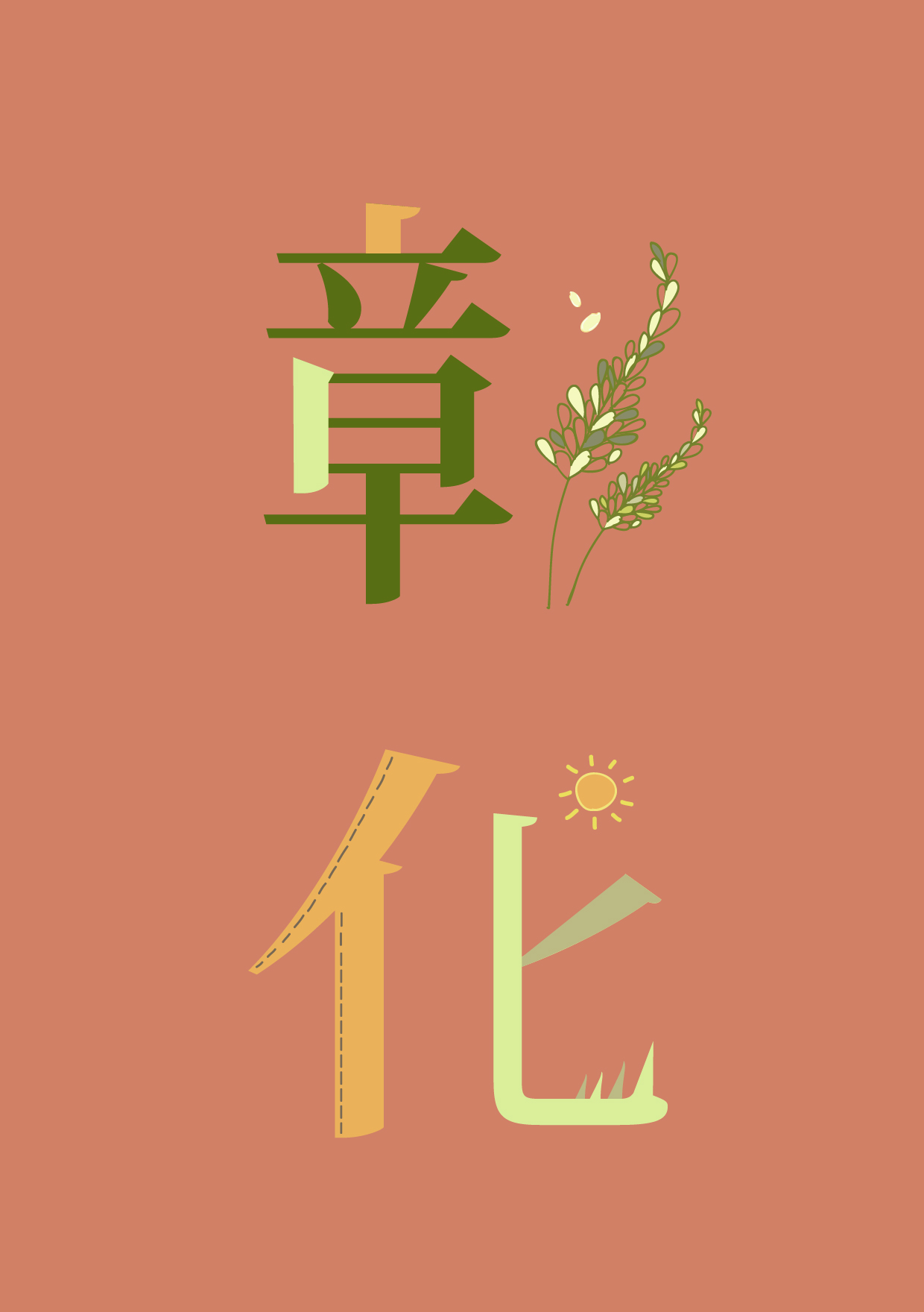 自從今年從台北來彰化讀書的我,發現彰化處處都是田,也有別稱為「台灣米倉」,我就以插畫風格的稻米融入創作字體之中。