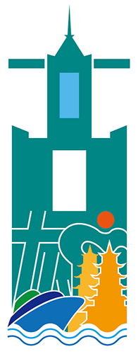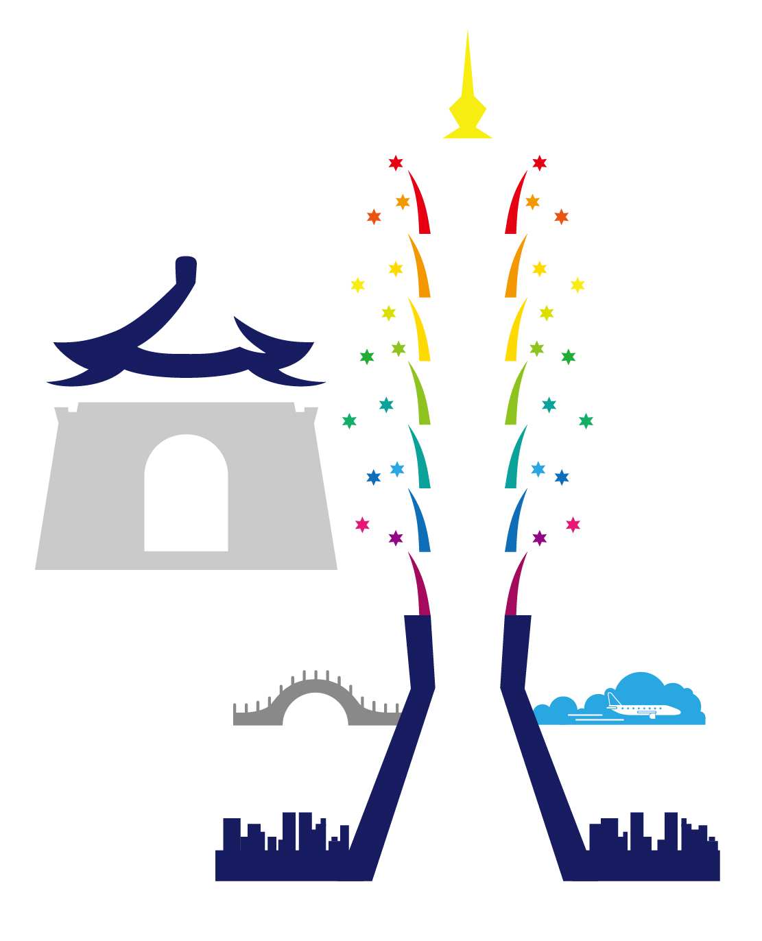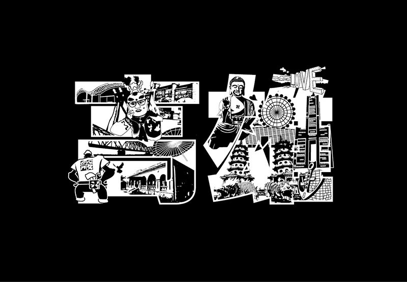 結合七股潟湖的夕陽、黑面琵鷺和曬鹽的鹽工,表現出代表之特色。