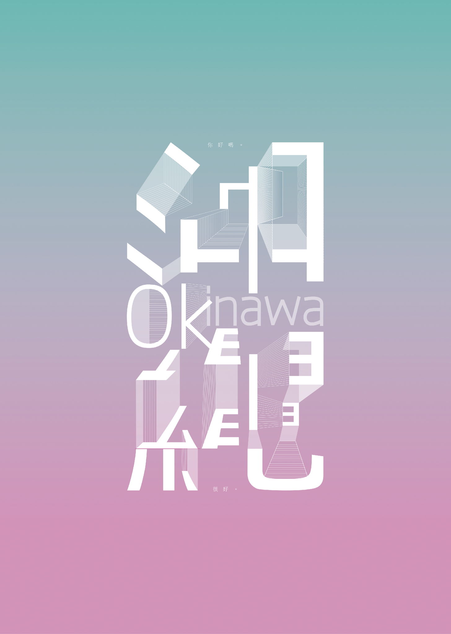 選擇二個顏色,分別代表海洋的藍色與溫暖的粉色做漸層,讓人彷彿置身當中,並運用線條與視覺的錯落感,製造出一個夢幻的空間,而這個空間就代表著我心中最美好的「沖繩」。