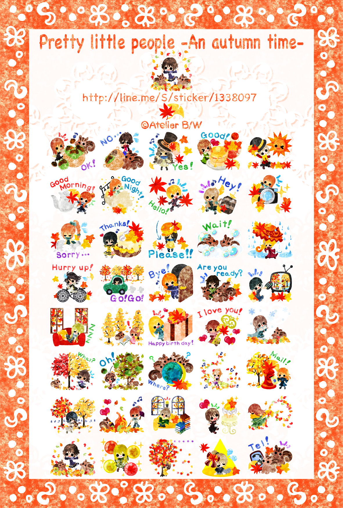 秋をテーマにした小さくて可愛い小人たちのスタンプです。家族や友達との日常生活にオススメ!