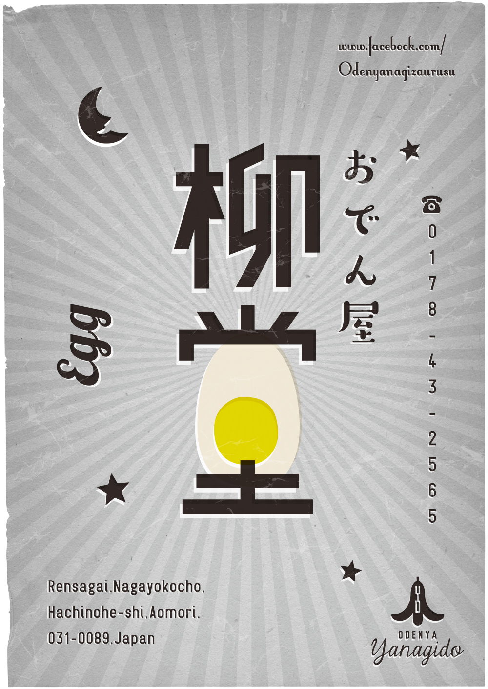 おでん屋 柳堂さんのTシャツグラフィック兼フライヤーデザイン。