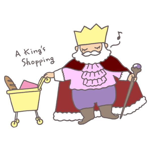 エコバッグ用に描いたもの。王様がお買い物をするって面白いな、という発想から。