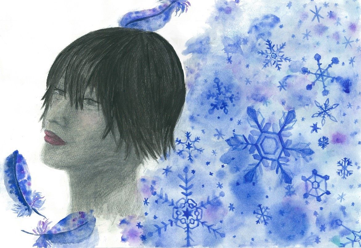 そのたびに立ち上がる勇気を雪の結晶が表しています。消えてしまっても空からいくつも降ってくるように、勇気は消えてしまってもまた新たな勇気が湧いてきます。降り積もれば見たことのない景色が広がります。一つの勇気は小さくとも、降り積もれば自分の見たことのない眺めへと導いてくれることでしょう。