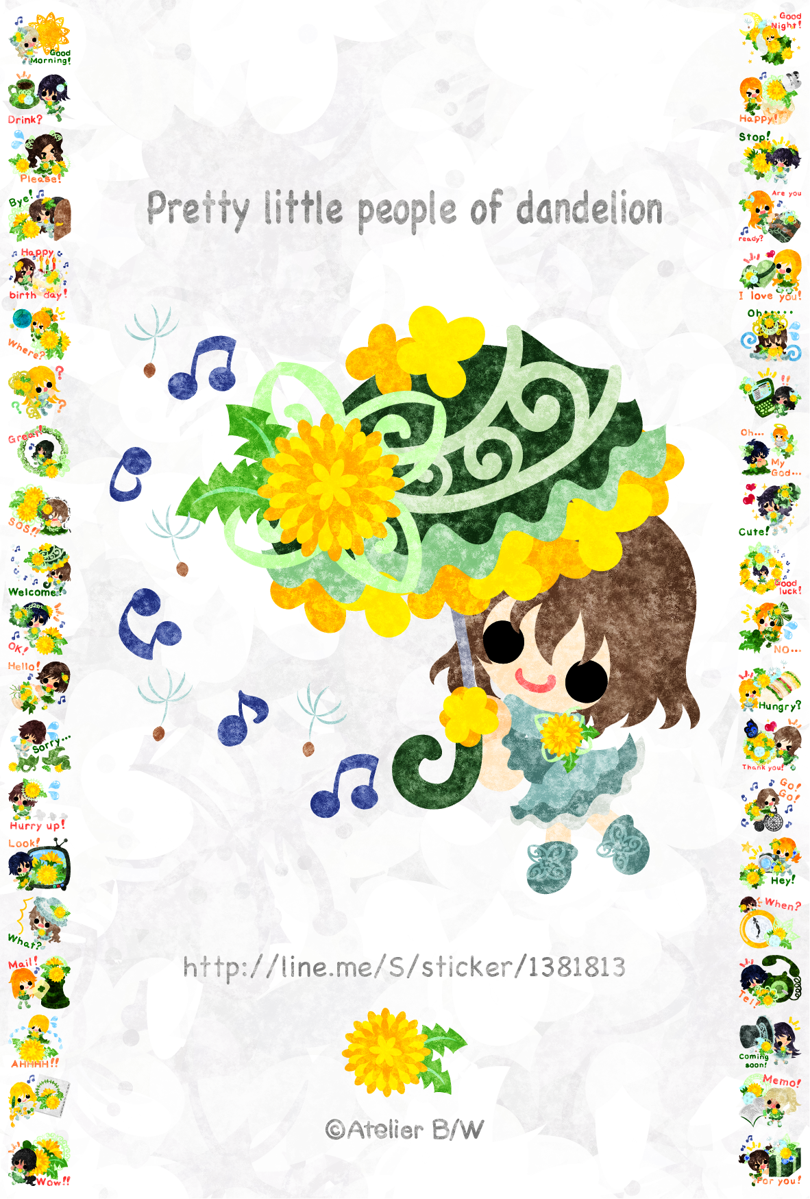 春とタンポポをテーマにした小さくて可愛い小人たちのLINEスタンプ(英名:Pretty little people of dandelion)を2/14に販売開始しました。日常会話を簡単な英語で表現しておりますので、外国の方にも使えます。