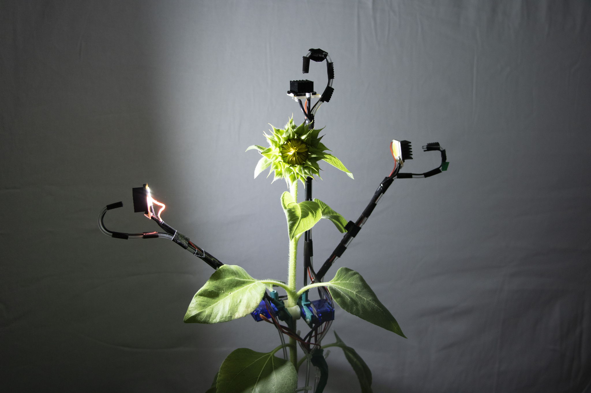 Architects and synthetic biologist have together dreamt of a world where the growth program could be encoded in the cells to be able to grow houses that integrated within in our ecology. On these lines of thought, this project makes the viewers deliberate about new symbiotic association with climbing robots that live on a sunflower plant. While the robot uses the plant as its scaffolding, it also trained the plant’s growth using onboard lighting.