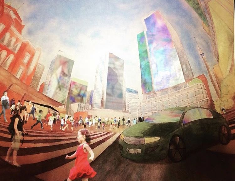 未来の世界で薄膜のガラスができたなら、薄膜ガラスの積層されたファサードがきっと雑踏の東京に、雨や足音に呼応して振動し、一瞬一瞬の輝きを放つのだろう。そんなシャボン玉のような儚く、綺麗な世界を描きました。