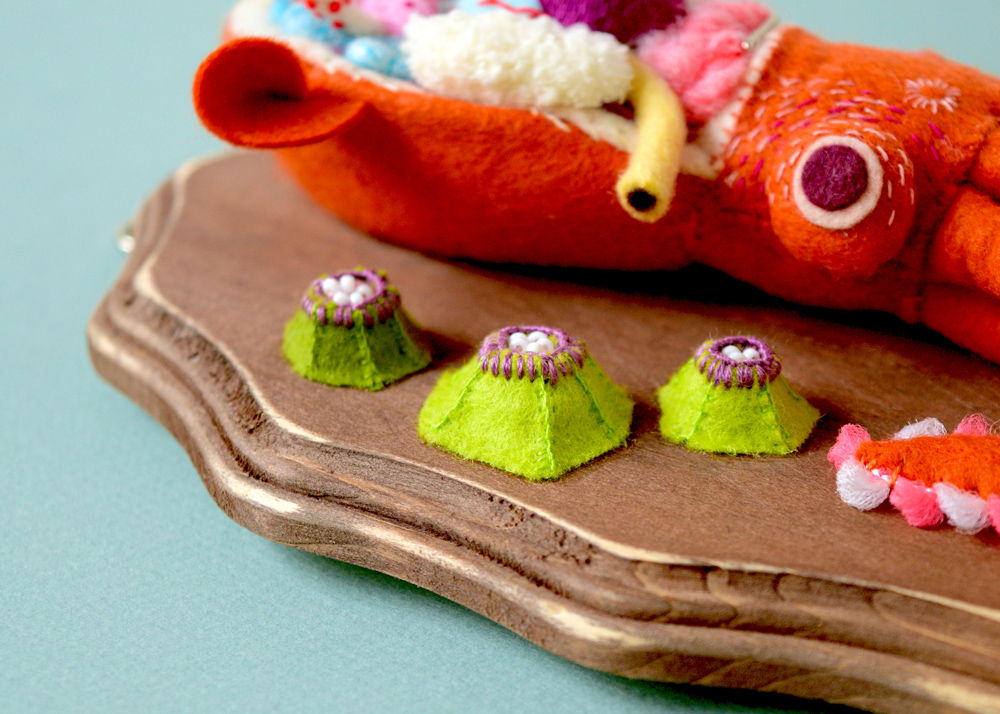 ソフトスカルプチュア系グループ展「Stitched 2」用の作品3点の内のひとつ「小耳イカの解剖模型」(縦23cm)。