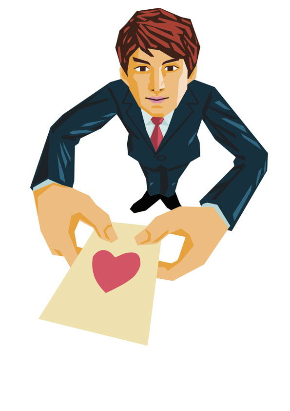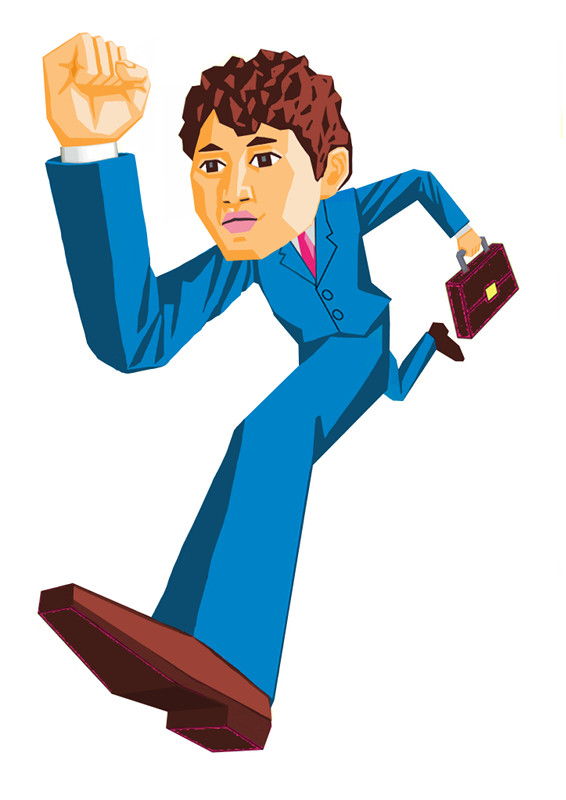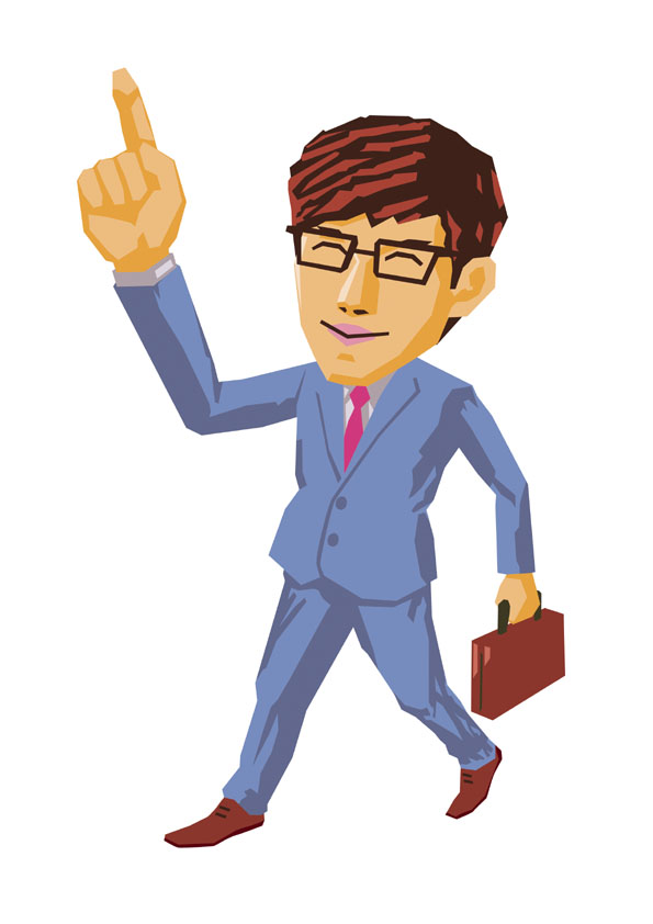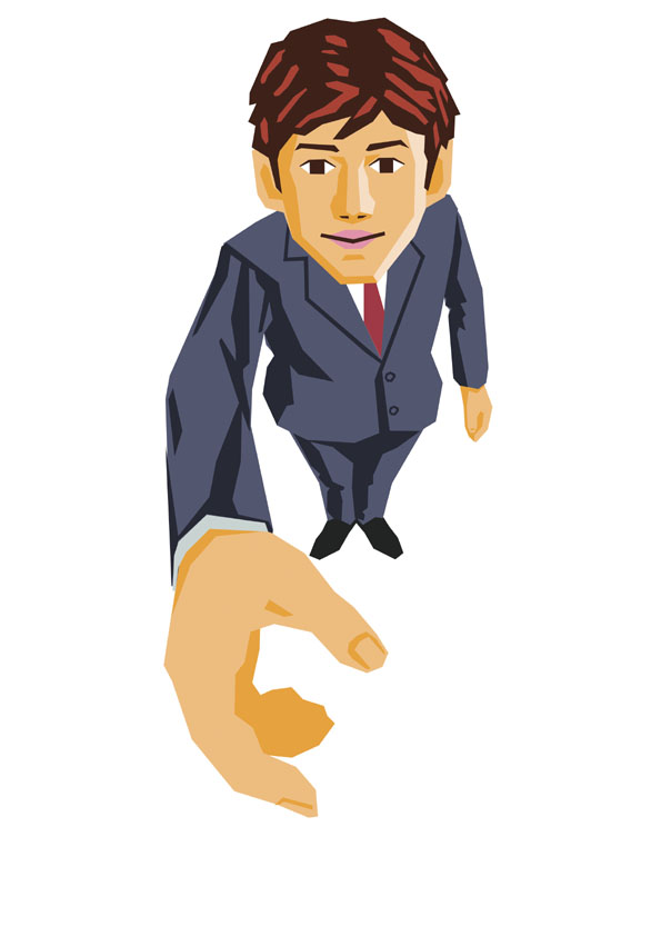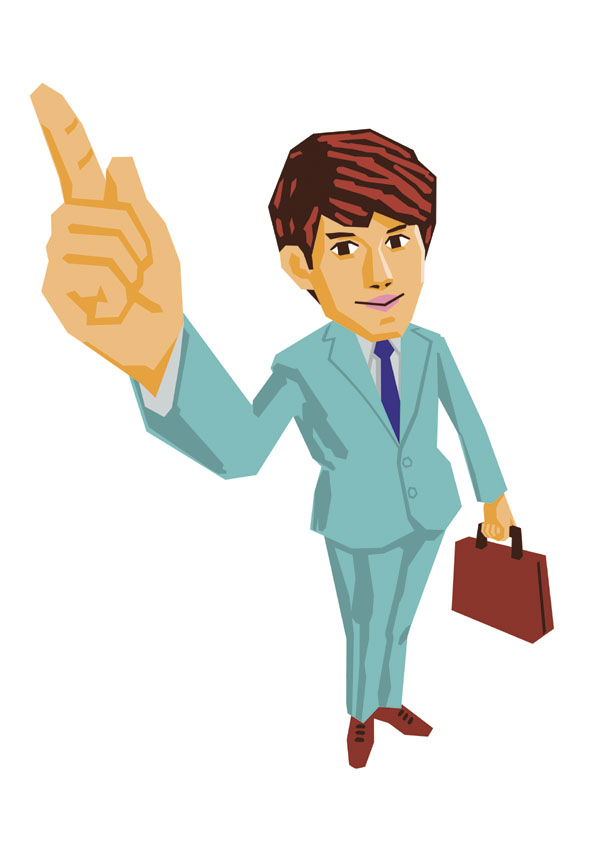カラー画。ビジネス書・雑誌向けを想定。 フラットなカラー面の構成で、押しの強いテイストに仕上げております。