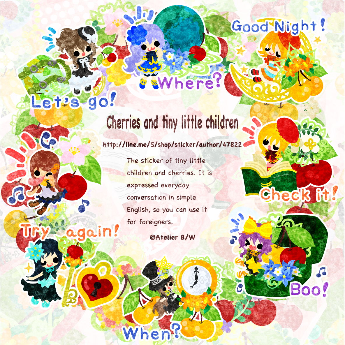 さくらんぼと小さくて可愛い子供達のLINEスタンプを6/5に販売開始しました。(英名「Cherries and tiny little children」)日常会話を簡単な英語で表現しておりますので、外国の方にも使えます。