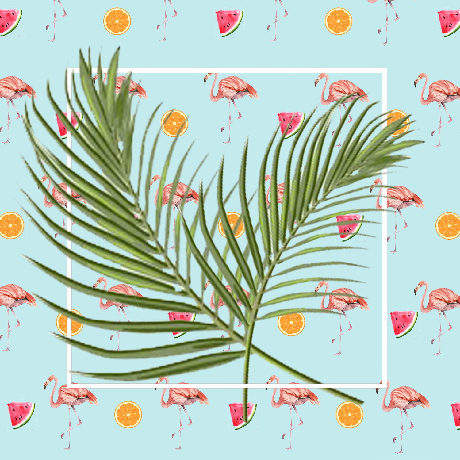 融合紅鶴、橘子、西瓜和棕梠葉等清爽元素,組成具仲夏風格的包巾