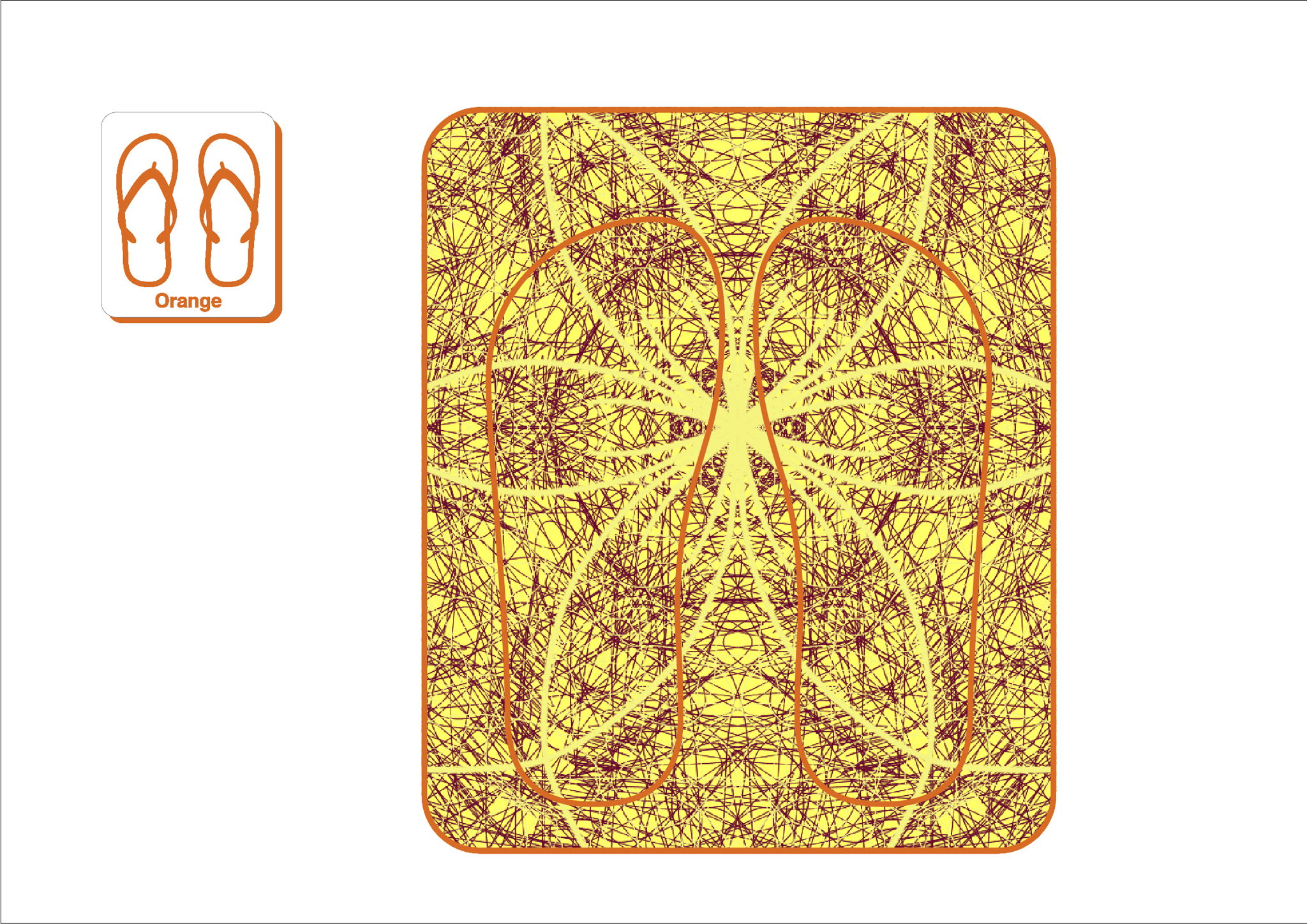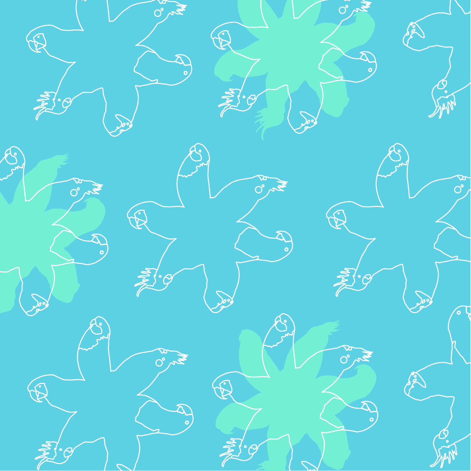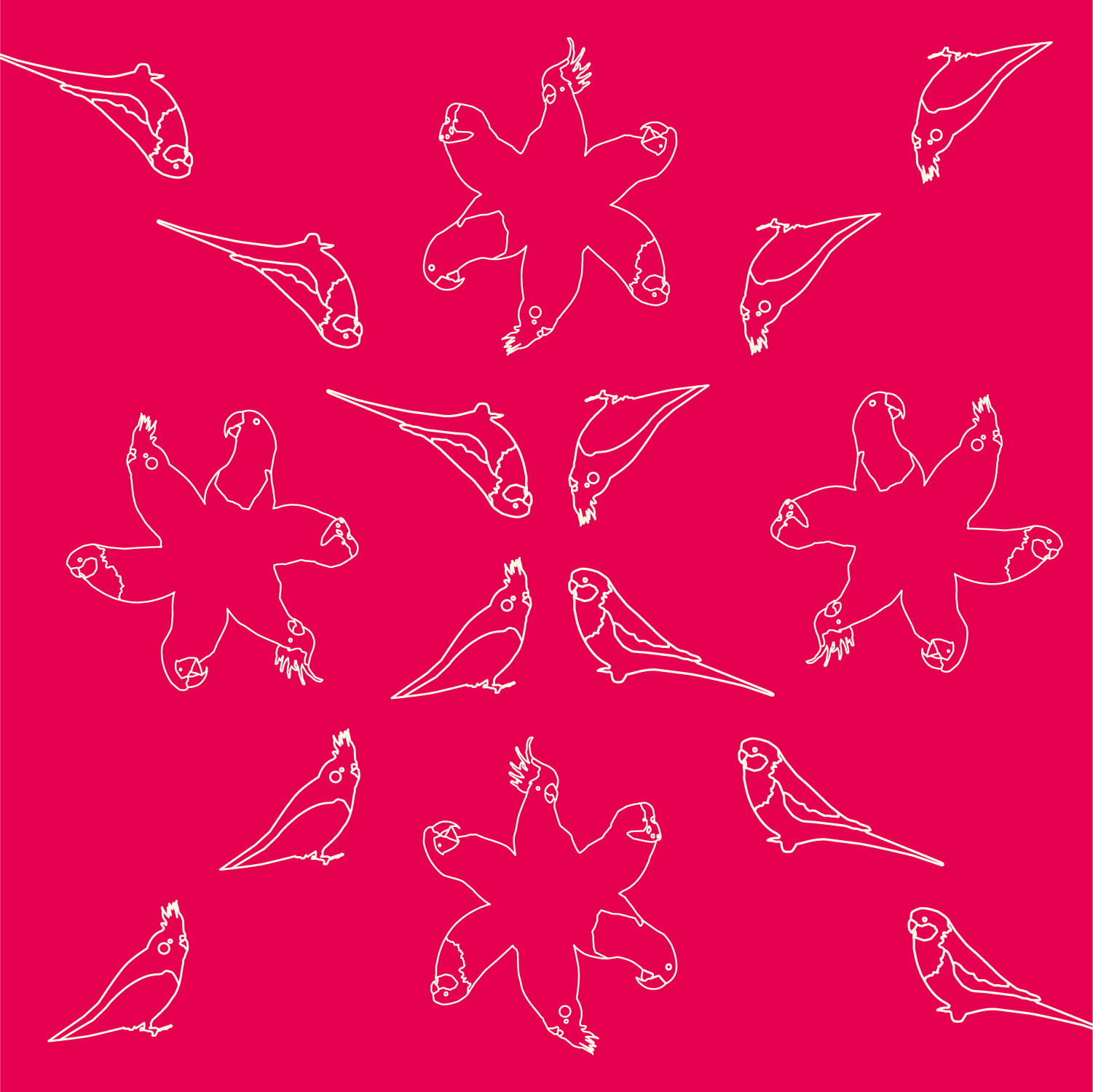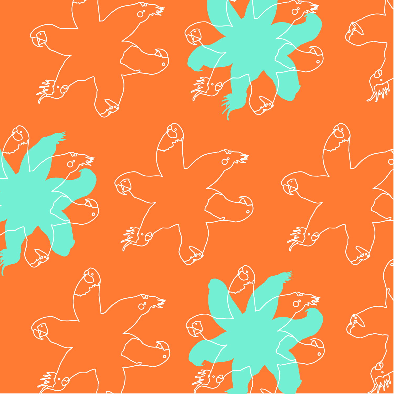 字面義,羽毛與花。將線條構成的鸚鵡圖像融合成一朵花,以大面積底色來讓居家環境熱鬧起來。 會用細線條構成圖像是達到花俏而不繚亂的效果。希望能給觀看者羽毛、花朵般的舒服。