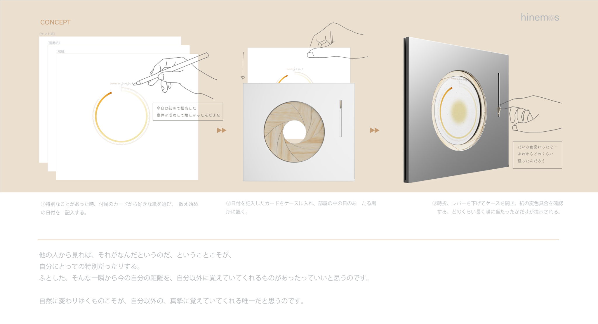 Hinemosは過ぎた時間の長さを語るカレンダーです。