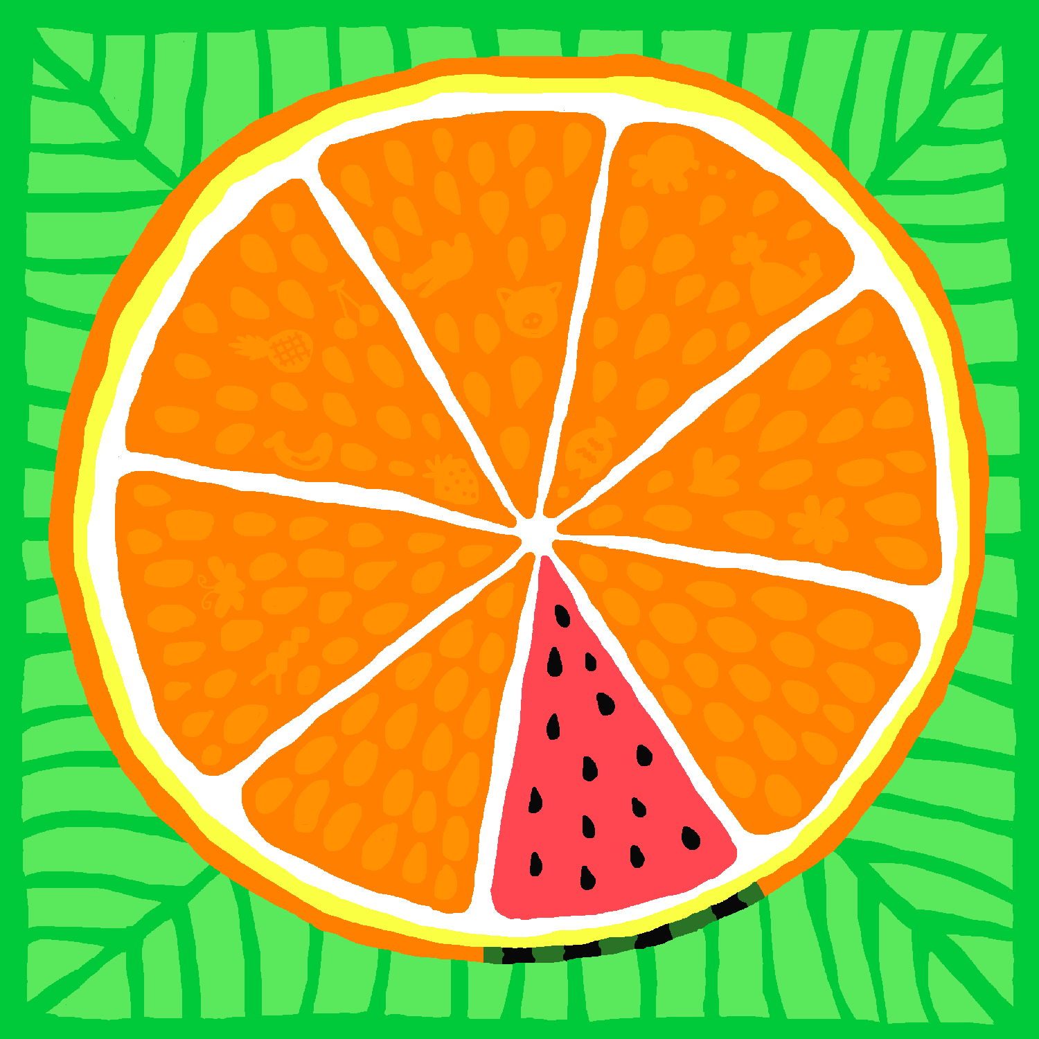 鮮甜的橘子果肉隱藏著小細節,如果印製成布包裝起來,就是一顆完整的附著葉子的橘子瓜。