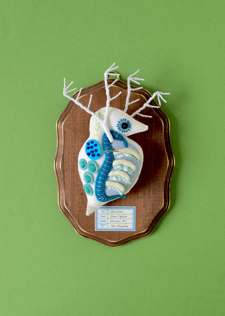 こちらは壁掛け式ミジンコ模型。新作ポストカードも並びます。