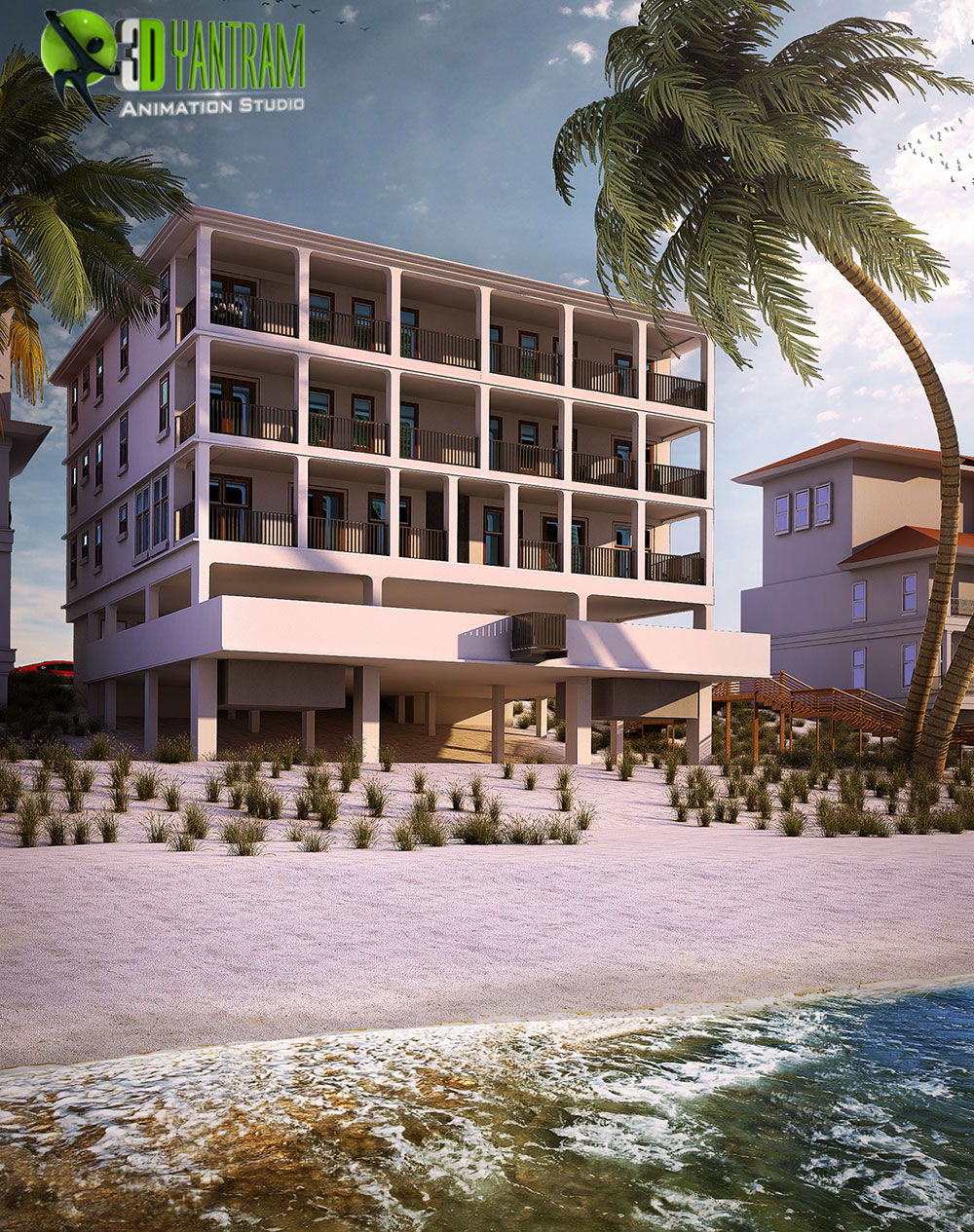 Best Beach Side Home rendering design by 3D Yantram Architectural Modeling Firm This will help you to present and close the deal better by presenting before the client a 3D view of the property they are going to buy or invest. Our Exterior Designer Artist is expert in all type of exterior Design like Hotels, Resort, Buildings and residential Properties. we also expert in sketchup modeling design services for low budget project.