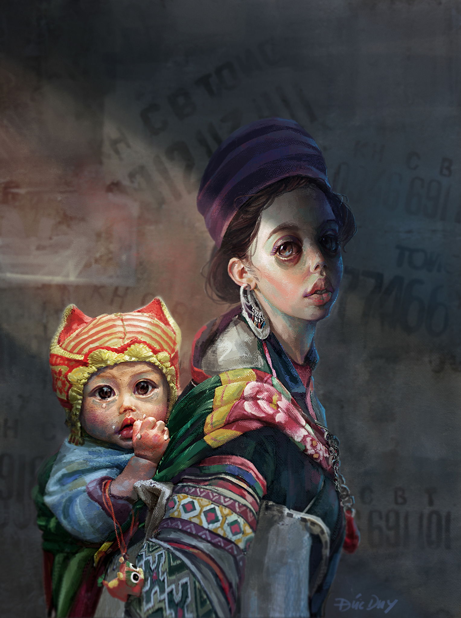 Mom ‘s love is the biggest thing we have in our life. I have inspired from a trip to ethnic place in my country. The Mom brings the kid around to asking for job. She spends the last money to buy her kid the fabric puppet and little rice. The sunshine is presenting her hope and the happy ending ^^. Her kid is the power and motivation for her to overcome everything.