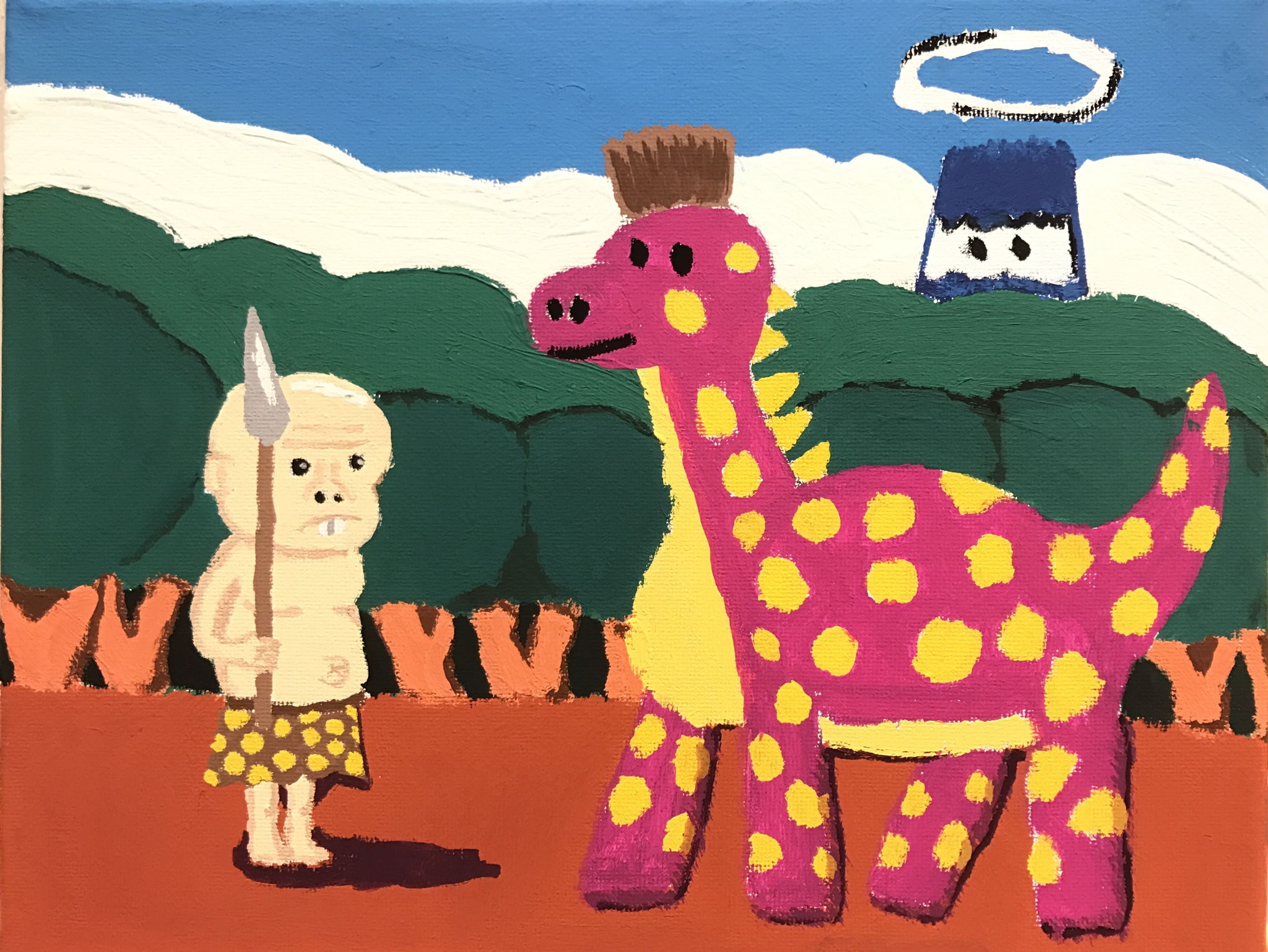 原始人と恐竜との意見交換会