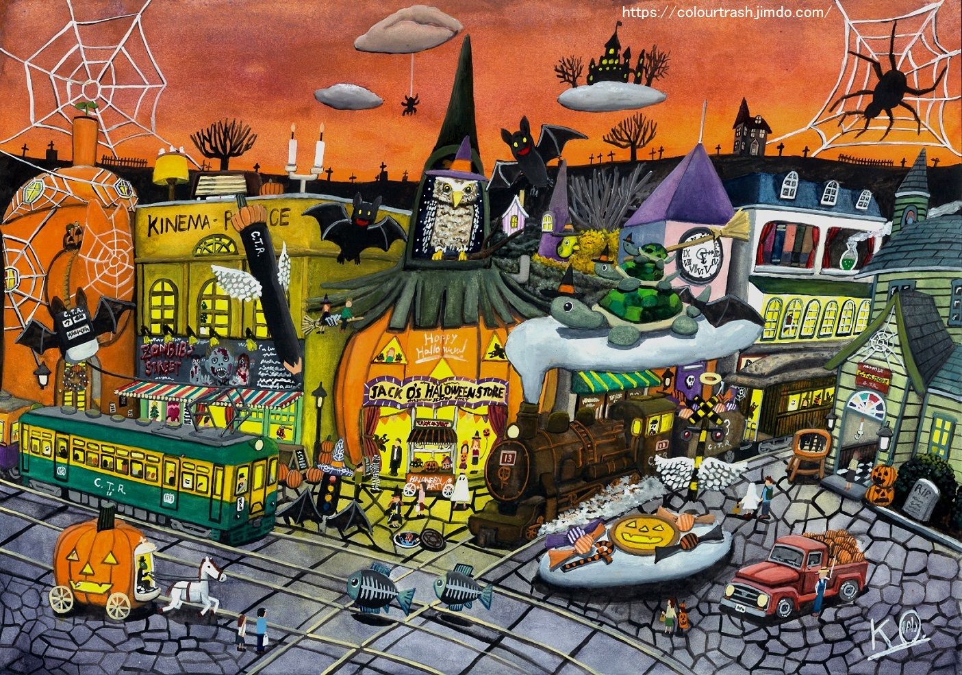 ハロウィンのイラストは、これまでポストカード用の細々としたものは描いたりしておりましたが、