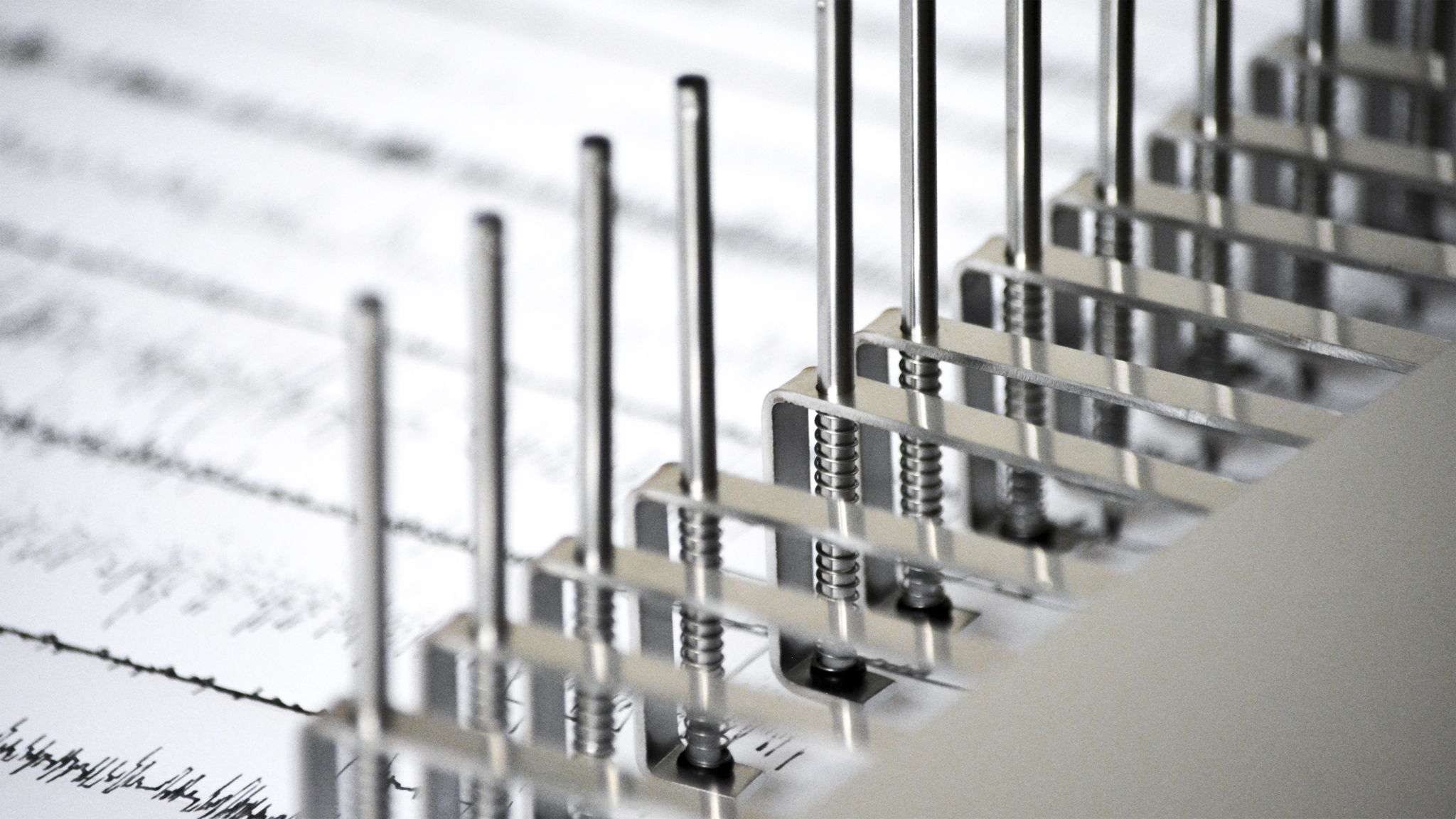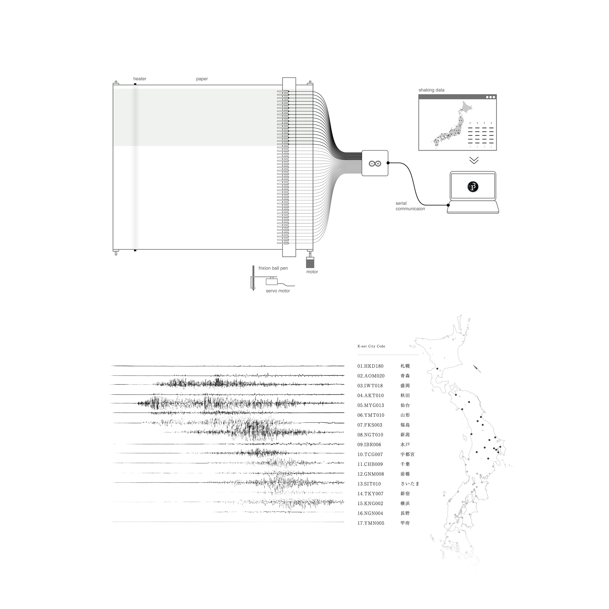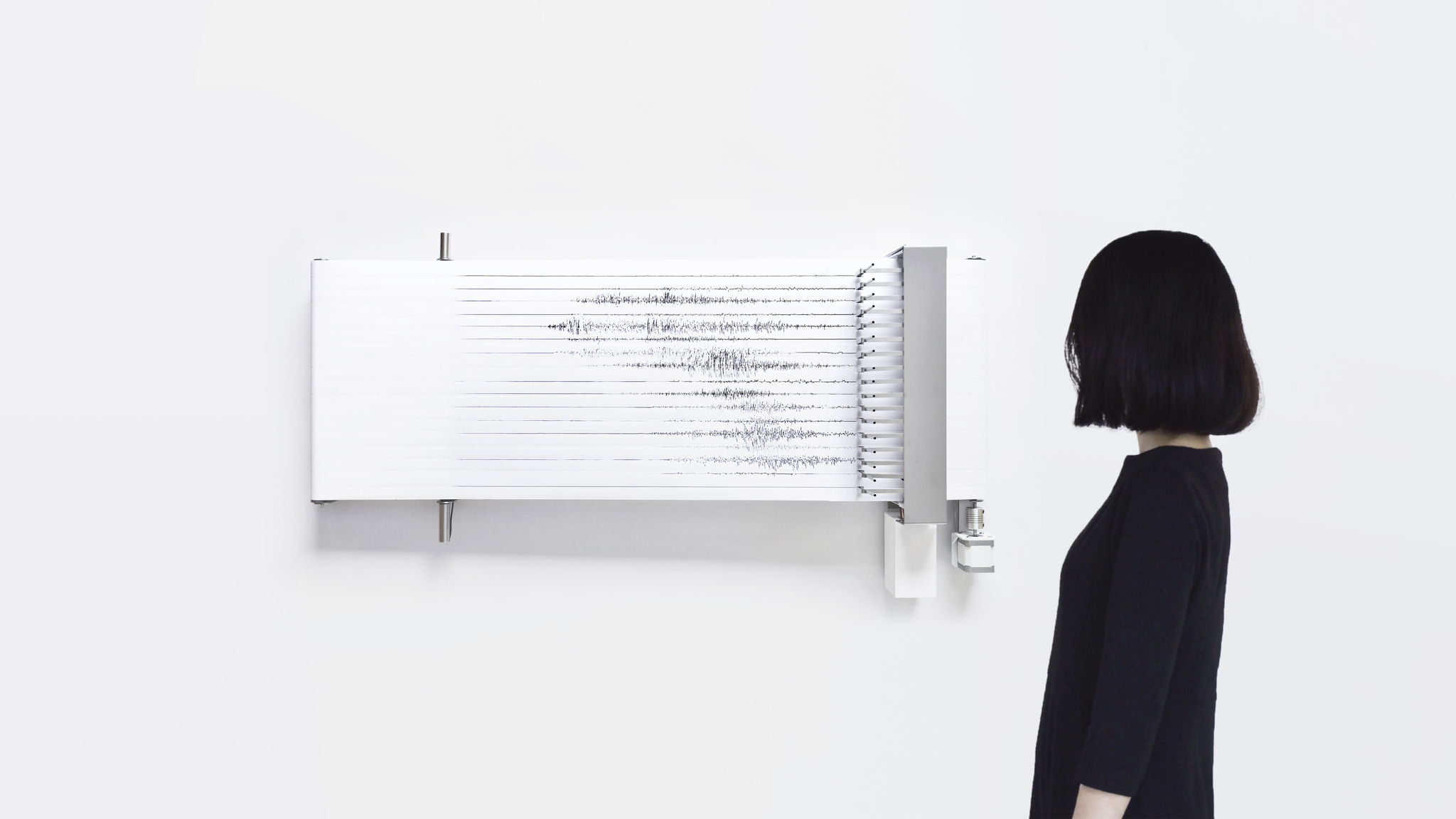 WAVES is a machine which draws seismic wave lines of every part of the country. It gives viewer sense of shaking by drawing lines with sound.