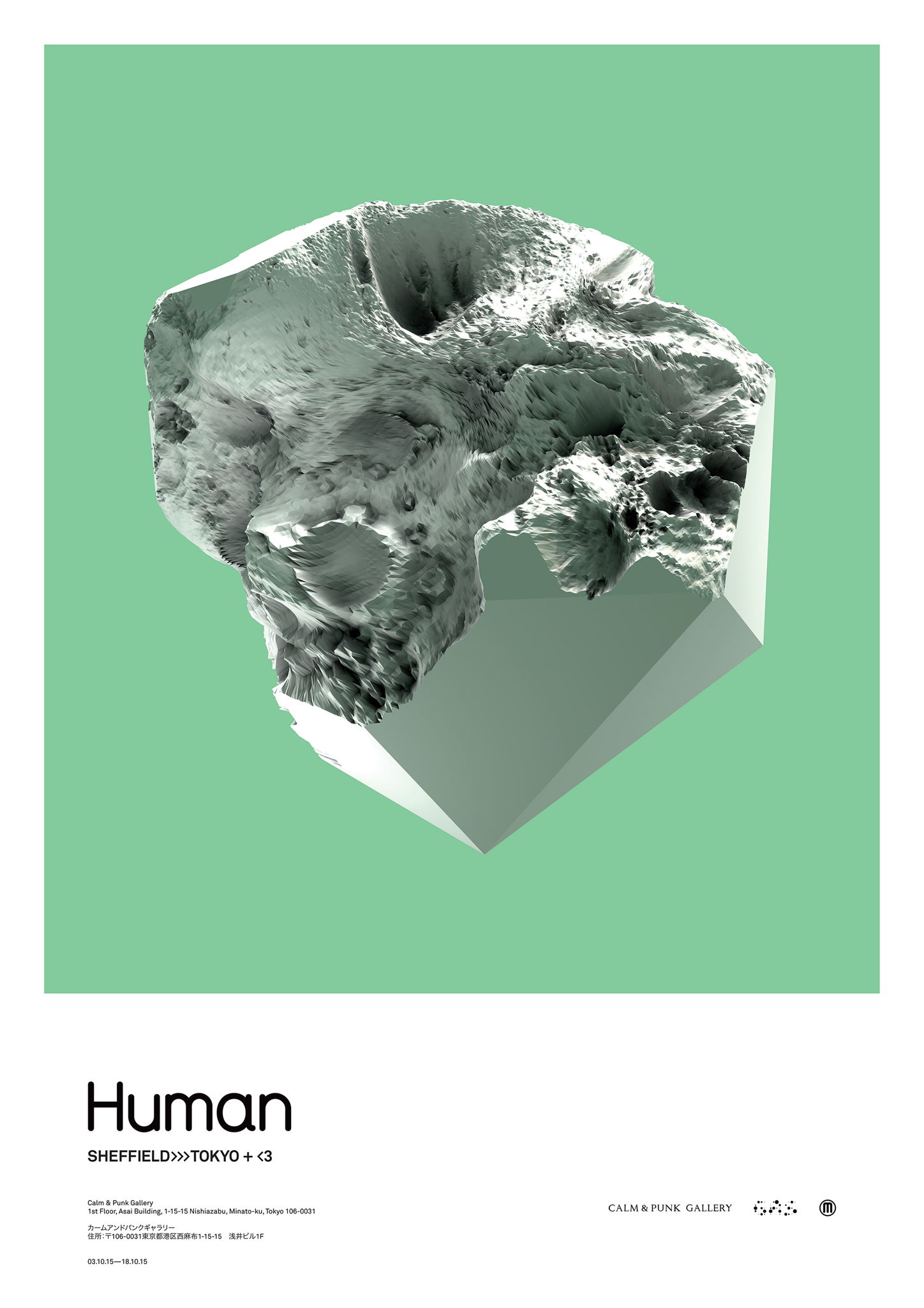 SHEFFIELD>>>TOKYO + <3 is an exhibition of three-dimensional works by Human, a creative team from Sheffield, UK. The objects were modelled using 3D software in their Sheffield studio, and sent as digital files to Calm & Punk Gallery in Tokyo where they were made manifest by a 3D printer.