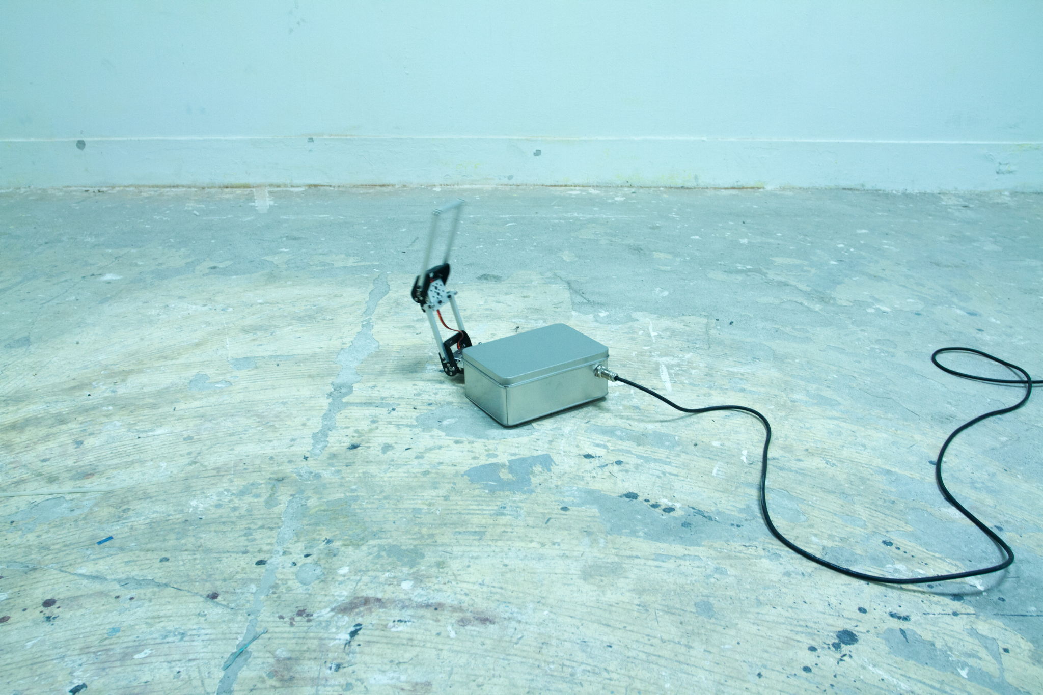 "I’m evolving into a box.” A iron box with a irrelevant mechanical arm and a brain. The mechanical arm manufactured by aluminium pipes and two servo motor, and the brain is made by a Raspberry pi which gets data from a remote computer with NEAT(Genetic algorithm + Neural Network algorithm) running in realtime.The iron box just like a newborn life, learning how to use the unknown arm.The whole period of this installation’s exhibition demonstrate how artificial intelligence drive daily object. In those process, the installation transmits some paradoxical condition.