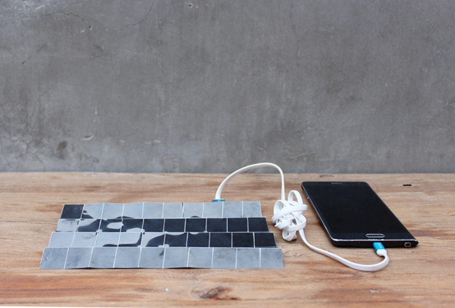 小さく折り畳んでリストバンドとして利用したり、大きく拡げて机の上で発電したりと、場所に応じて様々な形に変形可能であり、日常の様々なシーンで気軽に発電可能で、携帯電話、ラップトップパソコン、IOTデバイスに直接充電できるデバイスである。