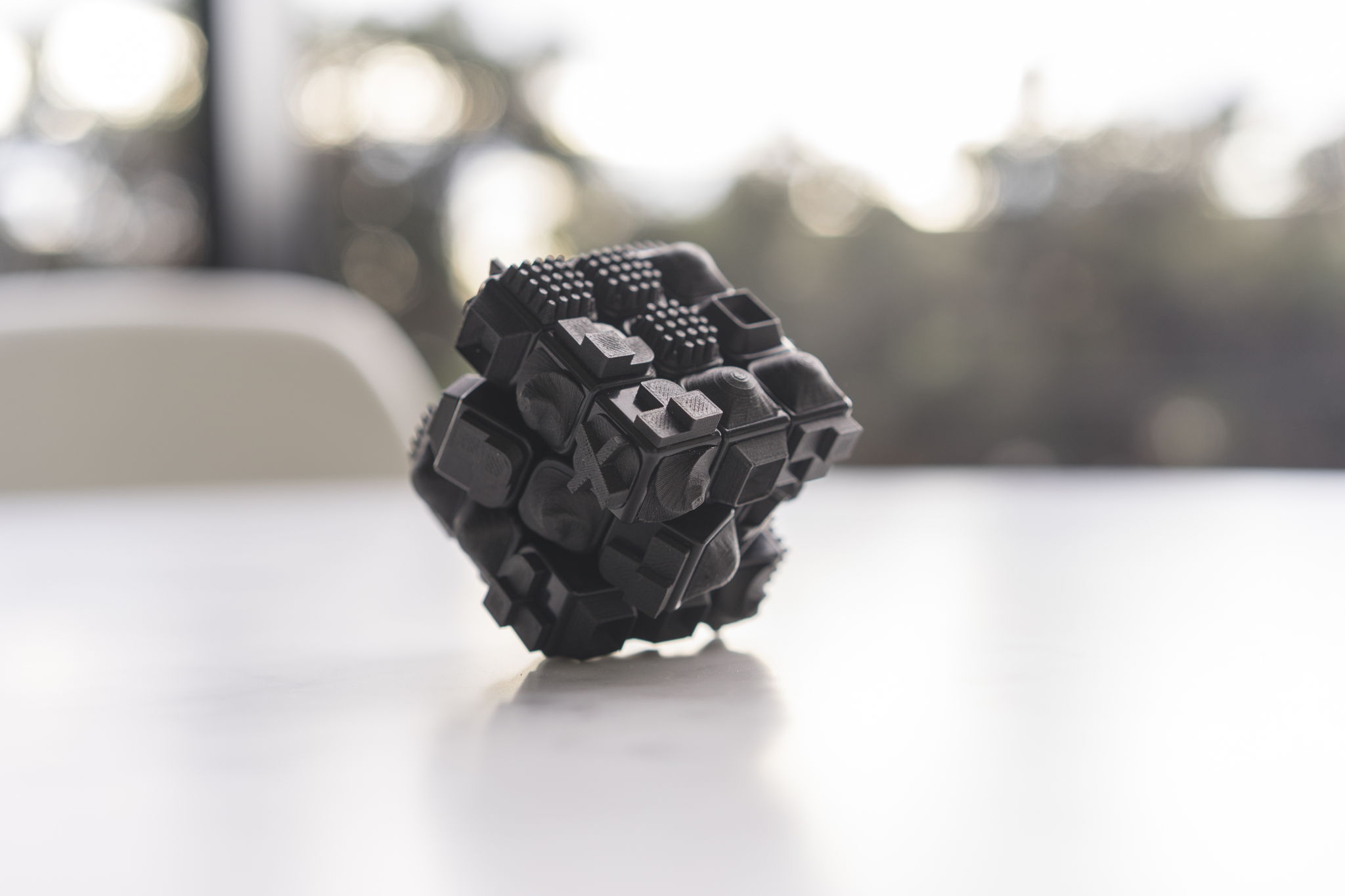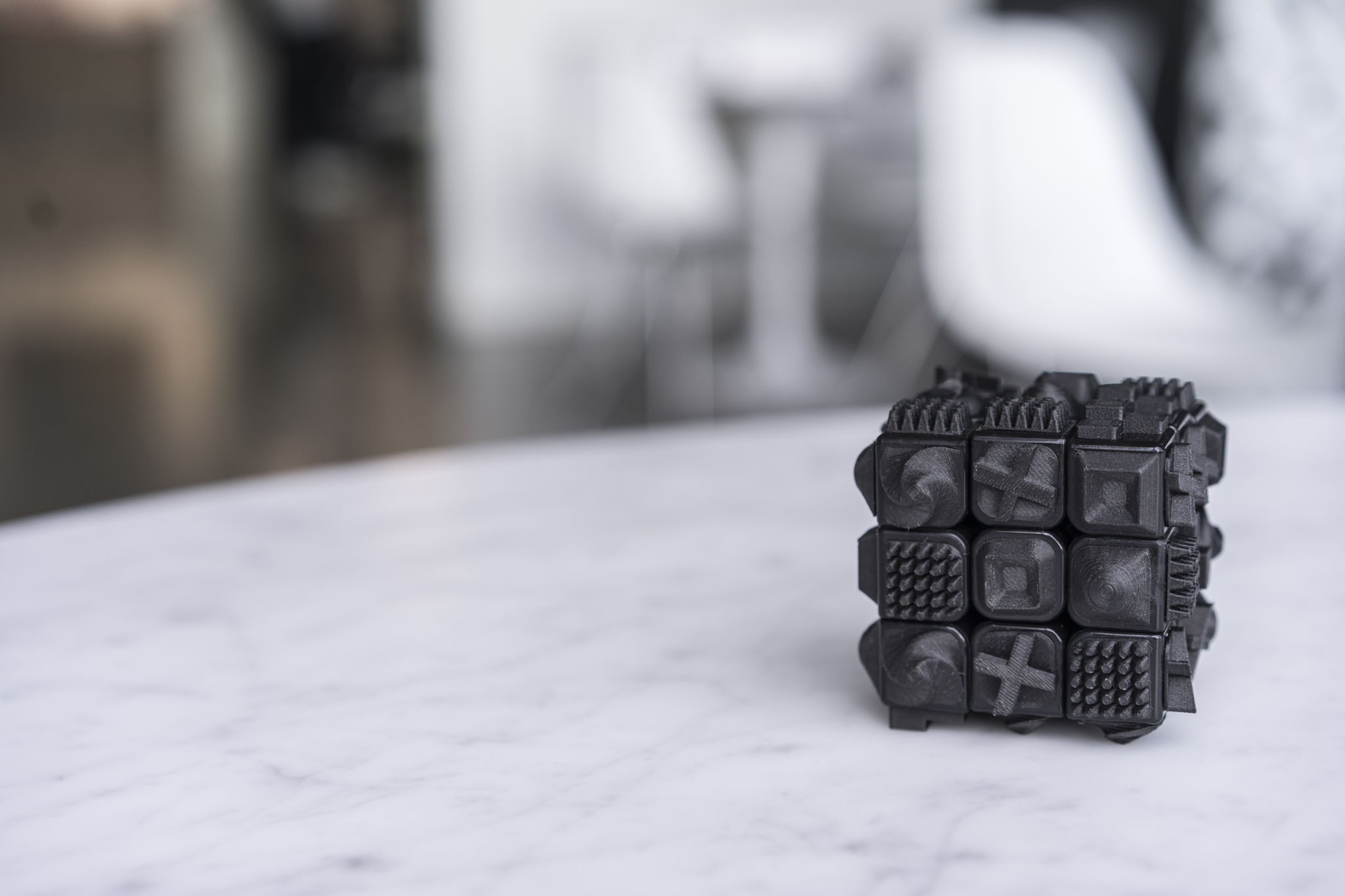 The Monochrome cube’s property of identification is devoid of colour; using texture to determine the similarity of faces. It features 6 different types of textures on 54 individually textured surfaces applied onto a solvable Rubik’s cube.