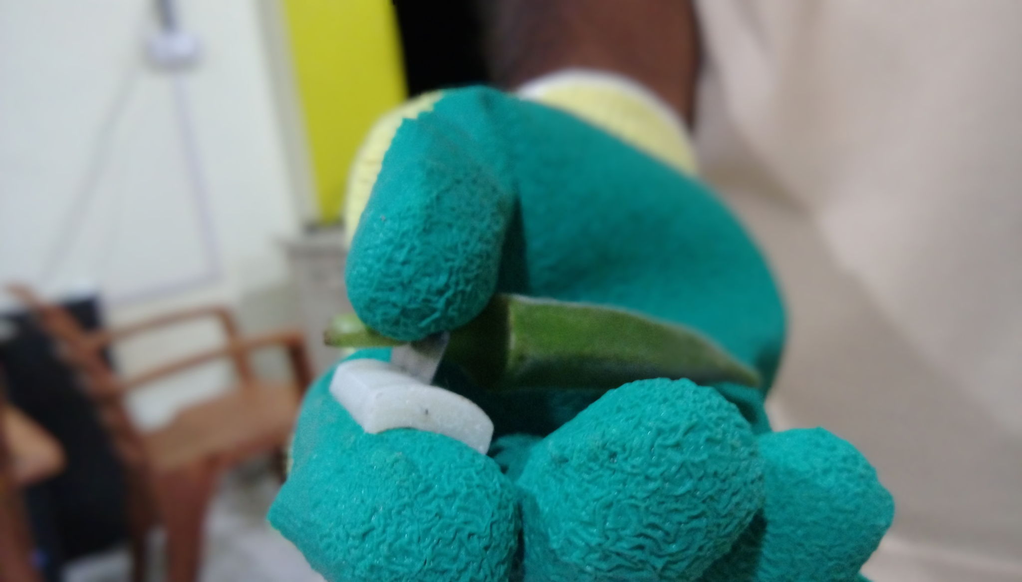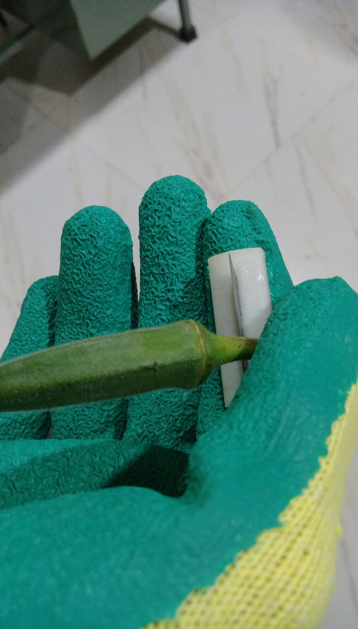 I made hand Gloves in the Fab Lab for harvesting vegetables especially Okra. By wearing this gloves, you can easily cut Okra (lady finger) in the field.